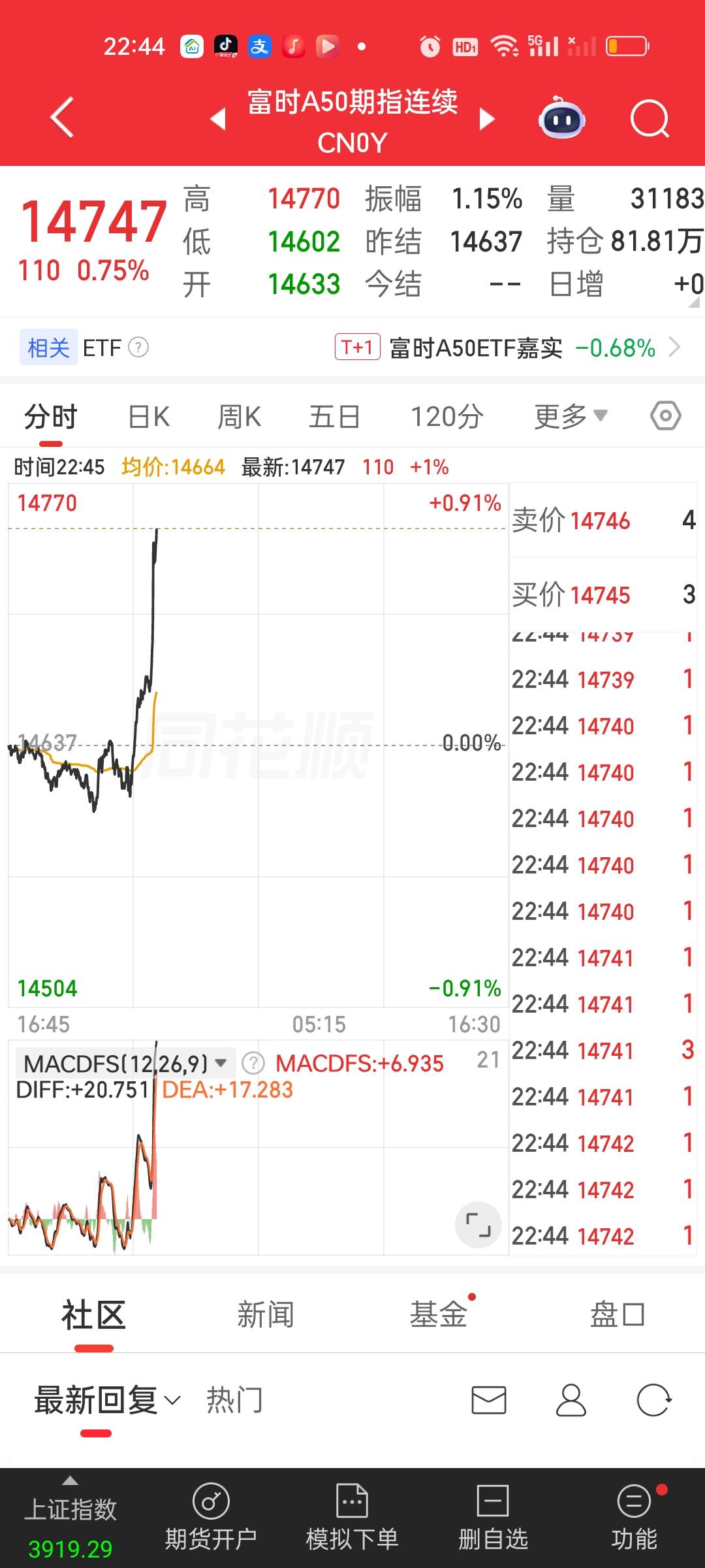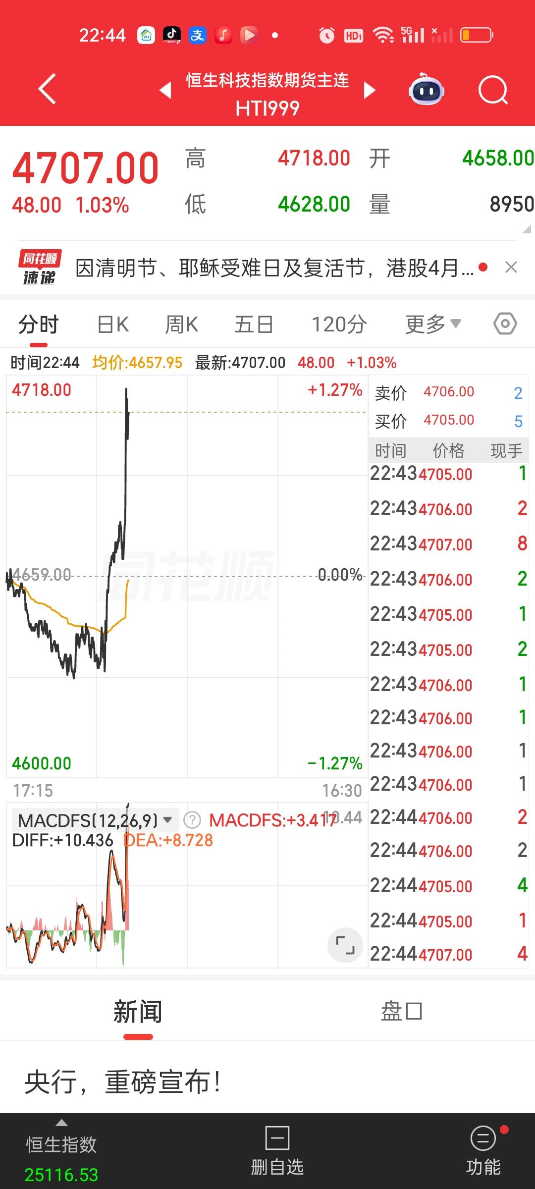 话音未落,美股集体爆拉,拉的人血脉喷张。明天难道要稳了吗?又是短时间内接近900点的爆拉,美股三大指数全部集体变红不说,连带着港股期指,富时A50,日经225指数主连全部直线爆拉,难道明天真的有了吗?那今天加仓的人岂不是晚上做梦都要笑醒?
