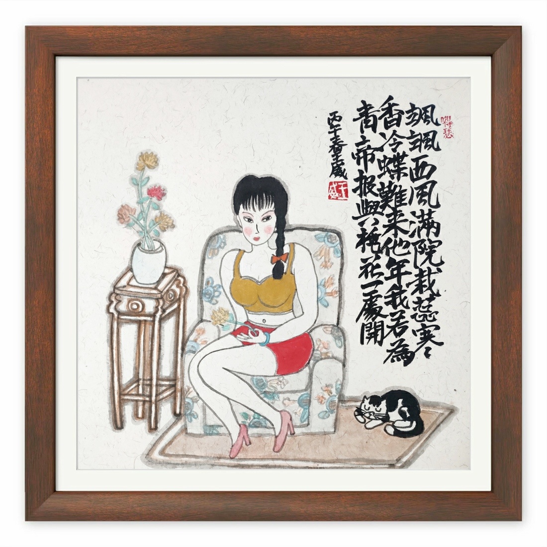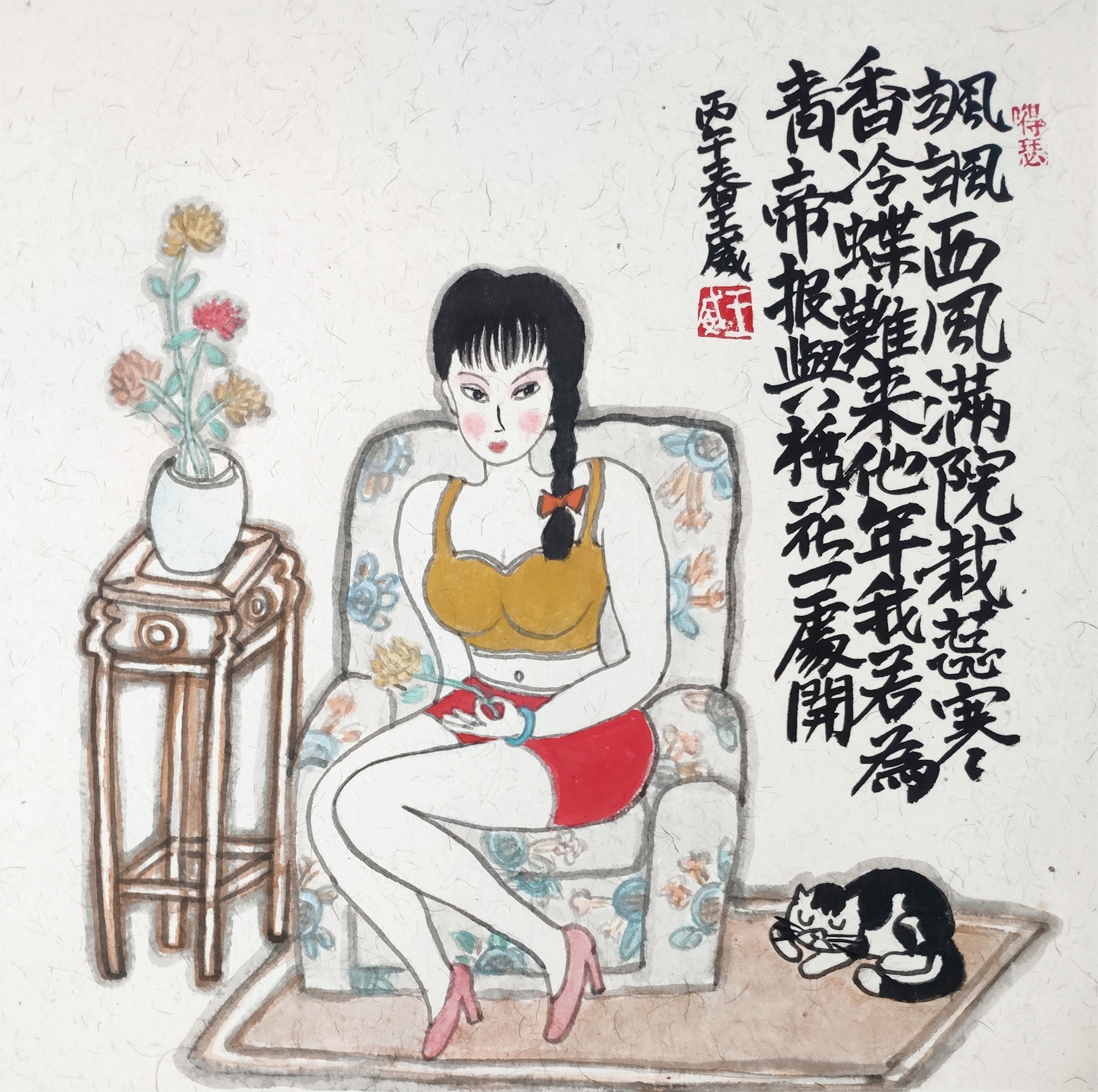 小画,飒飒西风满院栽,蕊寒香冷蝶难来。他年我若为青帝,报与桃花一处开。这就是中国风遇见艺术