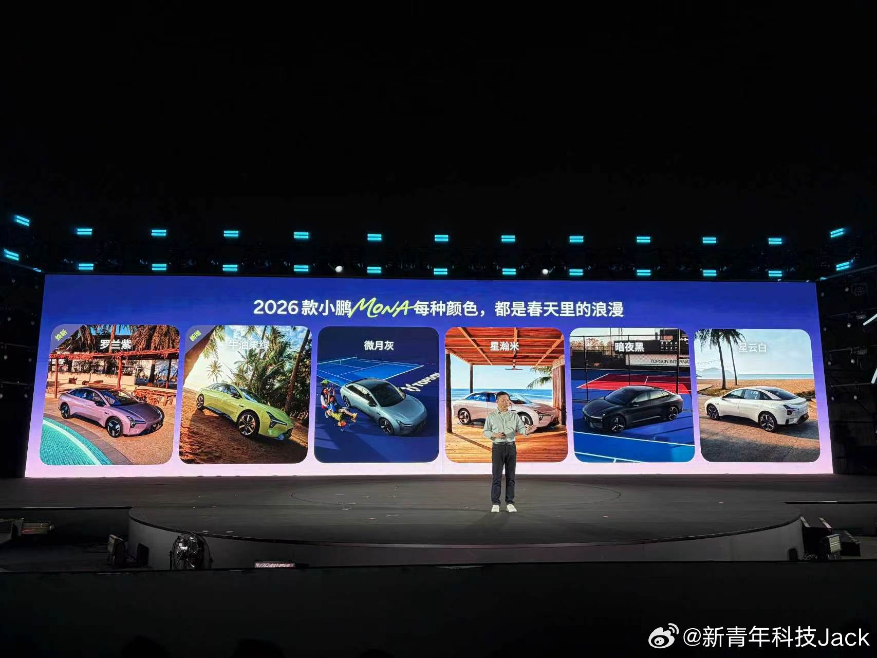 2026款小鹏MONA M03外观方面新增罗兰紫、牛油果绿配色,搭配星云白、暗夜黑等共六款外观配色。