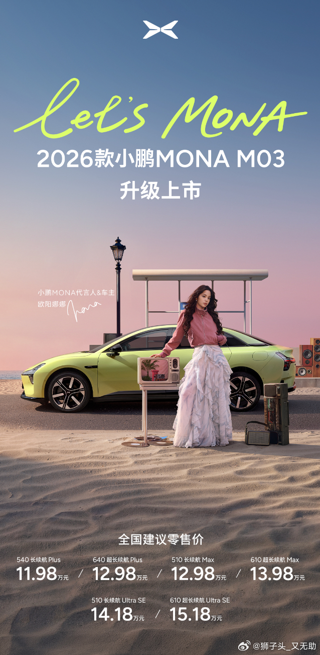 欧阳娜娜同款小鹏MONA起售价11.98万2026款小鹏MONA大大大大大升级小鹏汽车