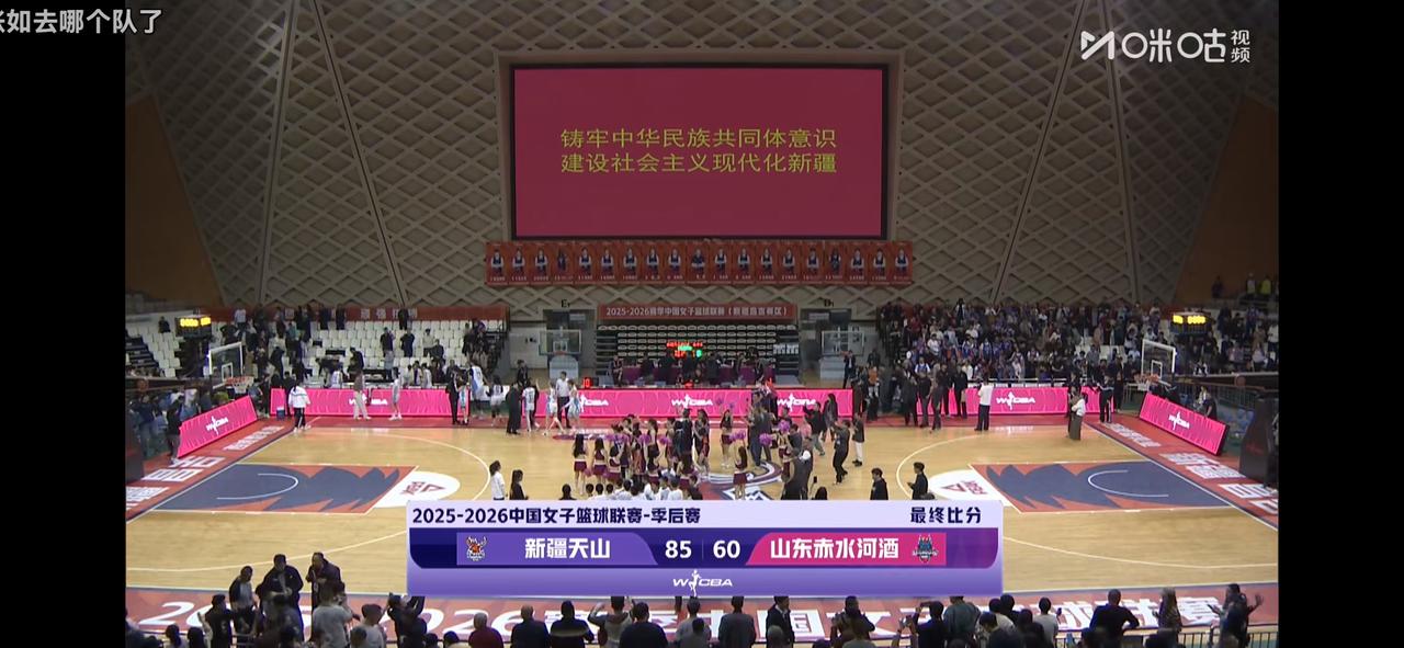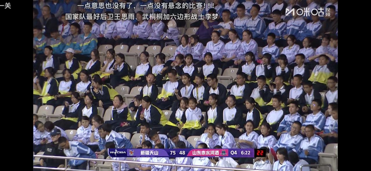 喜讯!新疆天山女篮主场以绝对优势战胜拥有第一高度的山东女篮,挺进半决赛!下半场新疆女篮王雪濛全面爆发,一个人下起了3分雨。本场比赛第3节开始就已经失去悬念,呈现出一边倒的态势。第4节山东队就被彻底打花,新疆一度领先近30分。最后时刻新疆队换下全部主力,开始进入练兵模式。恭喜新疆女篮,预祝新疆女篮季后赛夺冠🏆