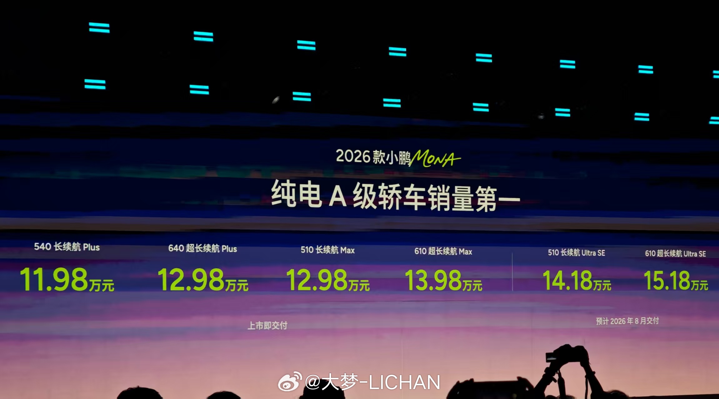 欧阳娜娜同款小鹏MONA起售价11.98万2026款小鹏MONA大大大大大升级