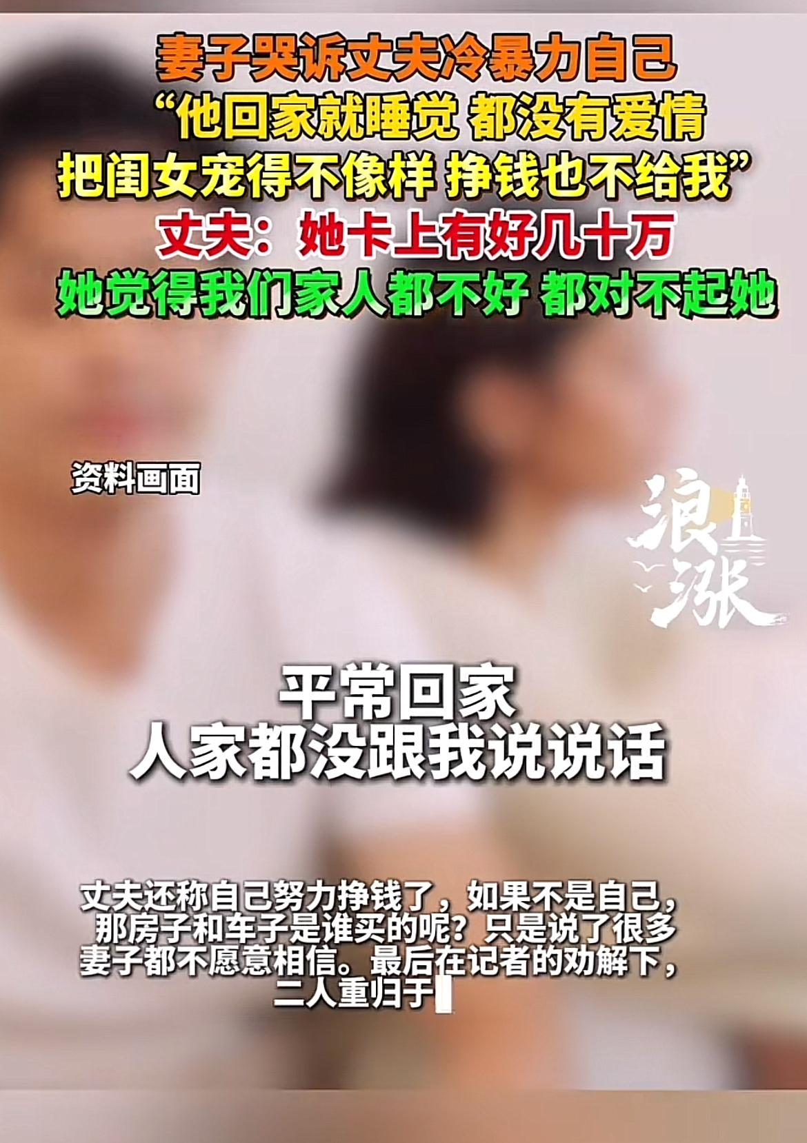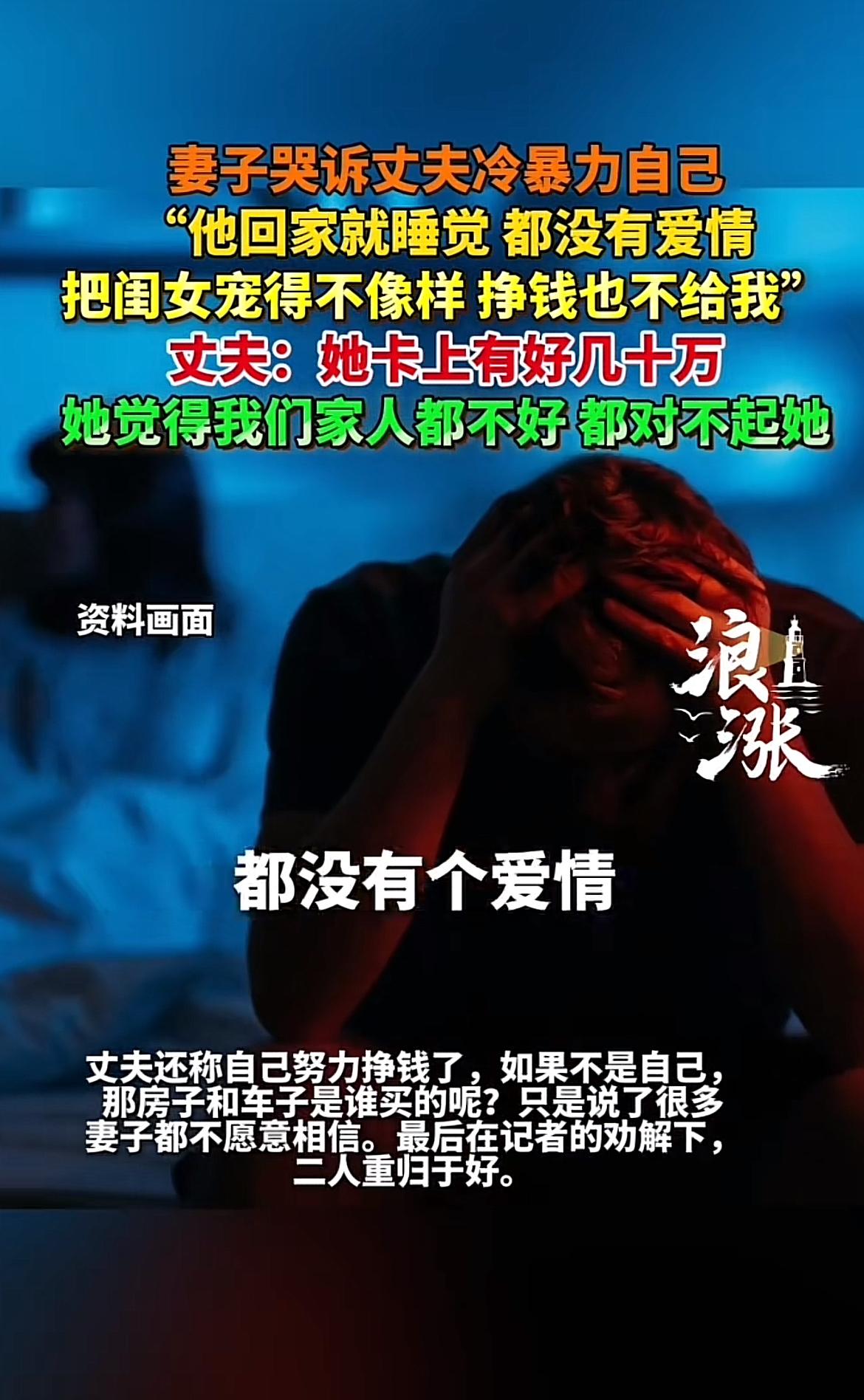 婚姻背后藏着诸多真相,丈夫的冷暴力和背叛就是其中残酷的一面。有些男人背叛后用冷暴力胁迫妻子,想结束婚姻或维持“三人行”,让妻子主动提分手,自己还能扮成“受害者”。比如妻子若拒绝他的不合理想法,他就沉默、无视,把过错推到妻子身上。 还有些男人出轨被发现后不知所措,只能用沉默逃避。而当妻子提离婚,不愿离的他们就玩拖延战术。 就算没出轨,冷暴力也像隐形利刃。有位32岁妈妈,和丈夫半年的微信交流少得可怜,生日朋友圈也只换来个点赞和简单评论,这种冷暴力比争吵更致命,它让婚姻成了无声的折磨。