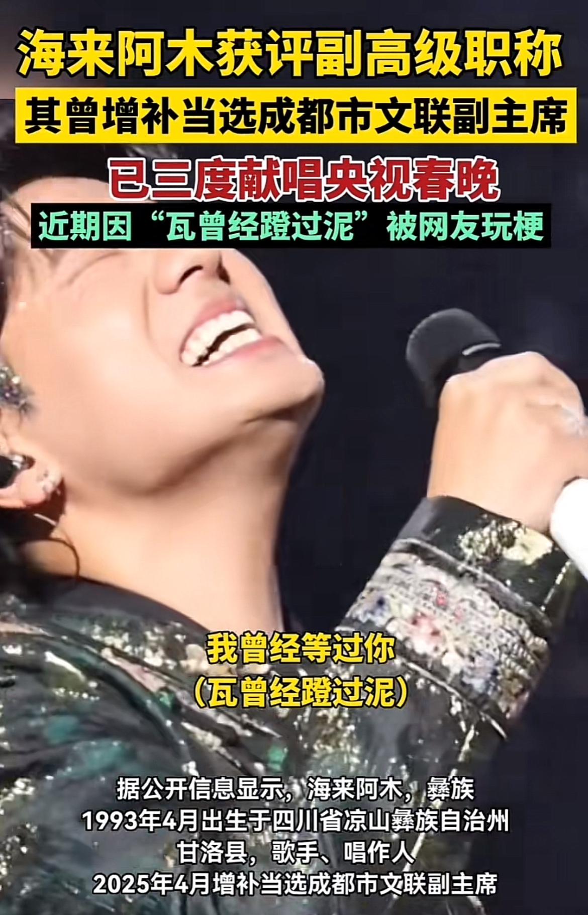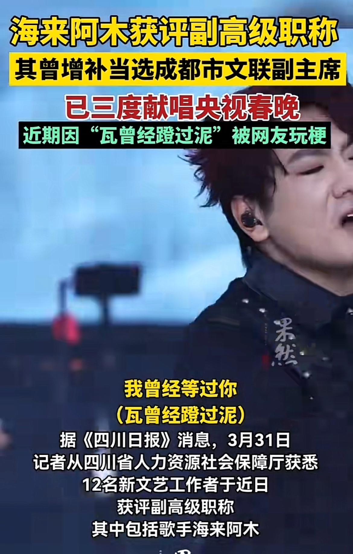 海来阿木获评“二级演员”副高级职称,还曾增补当选成都市文联副主席,这可太牛了!据《四川日报》消息,这是四川首次集中评审新文艺群体职称,海来阿木能在其中脱颖而出,实力可见一斑。他1993年出生于四川凉山,是优秀的歌手、唱作人,已三度献唱央视春晚,还开启了海外巡演。之前新文艺群体面临缺乏职称的无形壁垒,这次职称评审是改革破冰之举。海来阿木的成就,无疑给新文艺群体树立了榜样,期待他未来带来更多好作品!