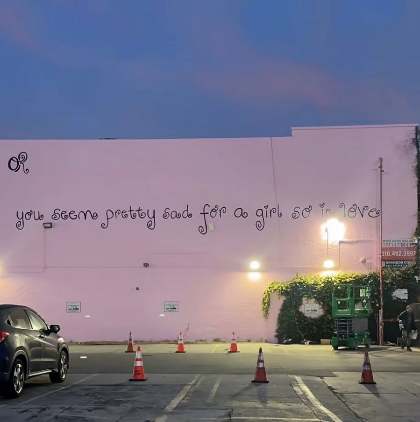 OMG!娅娅Olivia Rodrigo洛杉矶外墙宣传新歌标语“you seem pretty sad for a girl so in love”!和前不久疑似泄露的写真(图2)对上了!oliviarodrigo