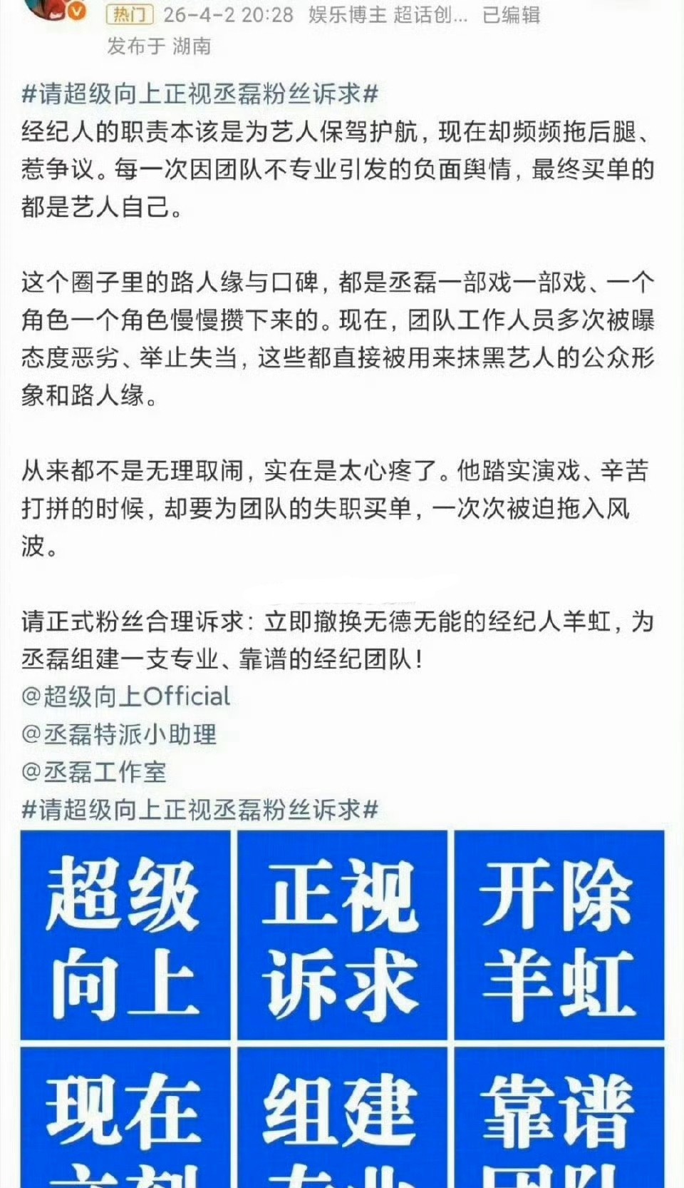 丞磊粉丝维👊🏻,要求公司重组靠谱团队