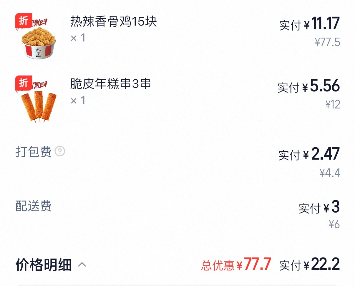 这个点钟又开始饿了,一不小心打开了外卖,刚好今天疯狂星期四,刚好很久没吃鸡了,一不小心没忍住就下单了