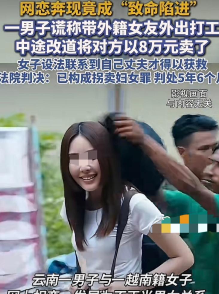 云南,一男子在网上认识了一名越南籍已婚女子,很快两人线下见面并发生了关系,女子对他也是极为信任,可男子却以打工为由将女子以8万元的价格卖给别人,而他自己只分到6000元,最后事情败露还判了刑 在云南最近发生了一起让人跌破眼镜的案子,说是一个男人,在网上认识了一个越南的女人,俩人没聊多久就线下见面,还发生了关系,那女人对他掏心掏肺格外信任,可谁能想到这个男人心里打的根本不是谈恋爱的主意,最后竟然以打工为借口,把女人卖给了别人,到头来自己就分了6000块钱,还落了个牢狱之灾,说起来真是又蠢又恶。 这事就发生在云南广南,那个男人姓王,平时也没什么正当营生,没事就喜欢在社交平台上刷来刷去打发时间,大概在2022年的时候,他在网上划到了一个越南女人的账号,俩人就这么隔着屏幕聊了起来,没人知道他一开始就没安好心,还是聊久了才起了坏心思,只知道他嘴特别甜很会哄人,不管女人说什么,他都顺着来把女人哄得团团转。 没人告诉这个越南女人,屏幕那头的男人,心里藏着不为人知的算计,她更没说自己在越南已经有了丈夫和孩子,只是一时糊涂,被网上的甜言蜜语冲昏了头脑。 俩人从一开始的打字聊天,慢慢变成视频通话,感情升温得特别快,女人渐渐对这个素未谋面的云南男人,产生了强烈的依赖感,甚至觉得自己遇到了对的人。 就这样聊了一年多,到了2023年7月,这个越南女人实在按捺不住心中的思念,不顾自己在越南的家庭,毅然决然地跨过国境,千里迢迢跑到云南,和这个男人奔现。 见面之后,俩人相处得看似十分甜蜜,女人更是对他言听计从,不管他说什么都相信,几乎是把自己的身家性命都托付给了他,丝毫没有察觉,身边这个对自己温柔体贴的男人,早已在暗中盘算着如何利用她。 相处了一段时间后,男人觉得时机成熟了,就找了个借口,说云南这边熟人太多,俩人在一起容易被人说闲话,不如一起去广东打工,既能挣到钱,也能安安稳稳地在一起。 单纯的女人没有丝毫怀疑,满心欢喜地相信了他的话,简单收拾了几件行李,就跟着他踏上了前往广东的列车,心里还憧憬着俩人未来的好日子,却不知道,这趟列车,载着她驶向的是一场无法预料的噩梦。 原来这个云南男人早就和同伙串通好了,所谓的去广东打工,根本就是一个骗局,列车走到半路,同伙就露出了真面目,联手控制住了这个越南女人,而那个口口声声说爱她的男人,全程冷眼旁观,丝毫没有一丝愧疚,很快女人就被他们以8万块钱的价格,卖给了安徽的一个男人,彻底陷入了孤立无援的境地。 说起来特别讽刺,这单8万块的“买卖”,作为始作俑者的云南男人,最后只分到了6000块钱,剩下的74000块,全被他的同伙分走了,他费尽心机出卖别人的信任,甚至触犯法律,到最后也只是个跑腿牵线的角色,被同伙层层剥削,到手的钱少得可怜,却为此付出了惨痛的代价。 被卖到安徽陌生村庄的越南女人,语言不通,身边没有一个认识的人,想要逃跑比登天还难,但她没有彻底崩溃,强撑着保持清醒,趁着买主不注意的时候,偷偷把自己的求救信息发回了越南,传给了自己的丈夫,她的丈夫收到消息后,立刻报警求助希望能尽快救出妻子。 警方接到报警后,迅速展开调查,顺着线索一路追查,很快就找到了被拐卖的越南女人,将她从水深火热中解救了出来,紧接着警方又顺藤摸瓜,抓获了那个拐卖她的云南男人和他的同伙,直到被抓这个云南男人才幡然醒悟,自己一时的贪念,不仅毁了别人的生活,也把自己的后半辈子给搭进去了。 2026年3月,云南省广南县人民法院对这起案件进行了宣判,最终认定这个云南男人犯了拐卖妇女罪,判处他有期徒刑五年六个月,还处以5000元罚金,他之前分到的6000块非法所得,也被全部追缴,五年半的牢狱之灾,加上罚金和追缴的赃款,他到头来什么都没得到,反而落得个身败名裂的下场。 一场看似浪漫的跨国网恋,最后变成了一起刑事案件,没有赢家只有无尽的伤害,那个云南男人用五年半的牢狱,换来了6000块钱的教训,而那个越南女人心里的创伤,恐怕需要很久才能愈合,说到底做人还是要守底线、存善心,不要被贪念冲昏头脑,也不要轻易相信陌生人,不然迟早会为自己的行为付出代价。