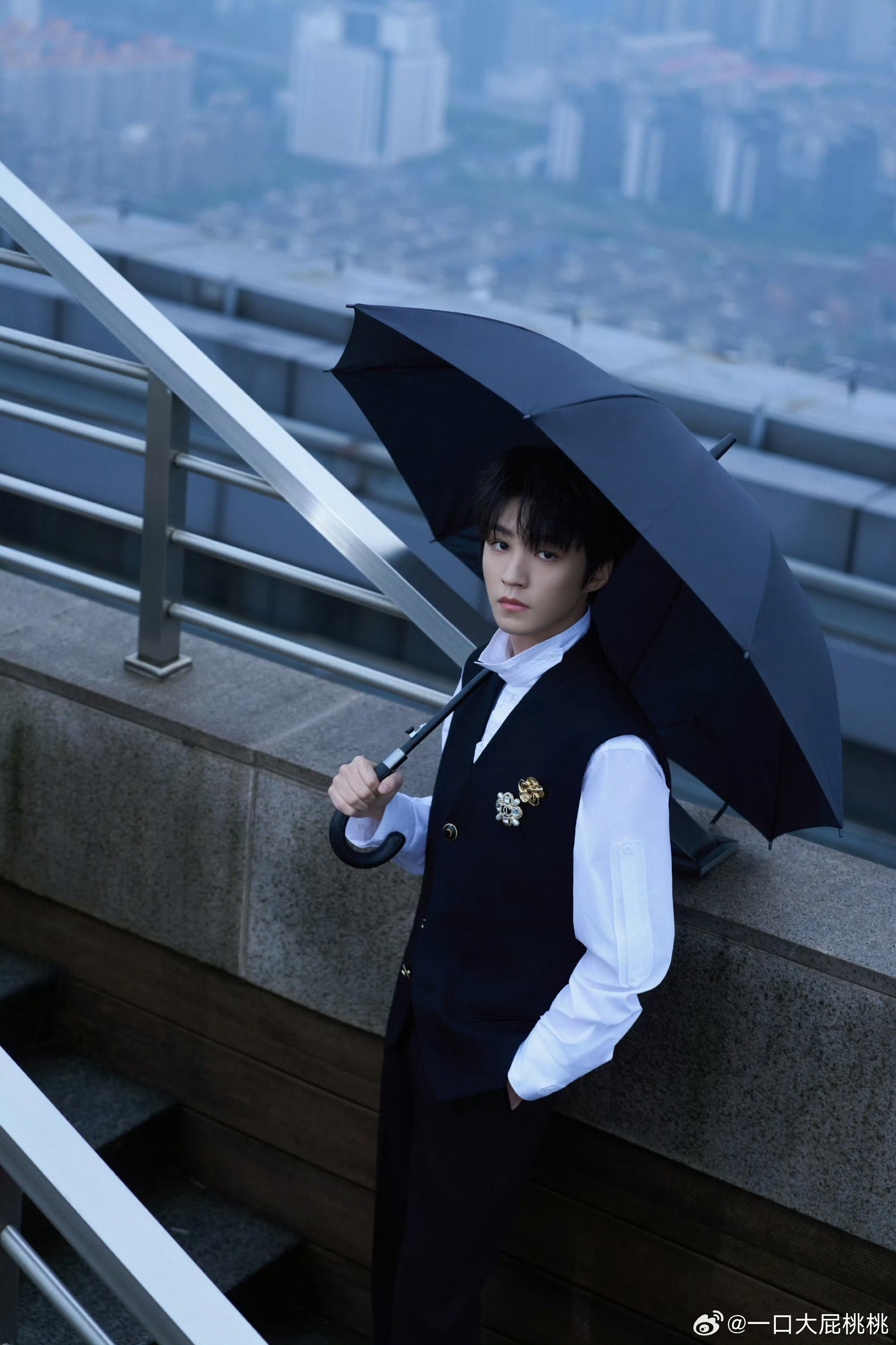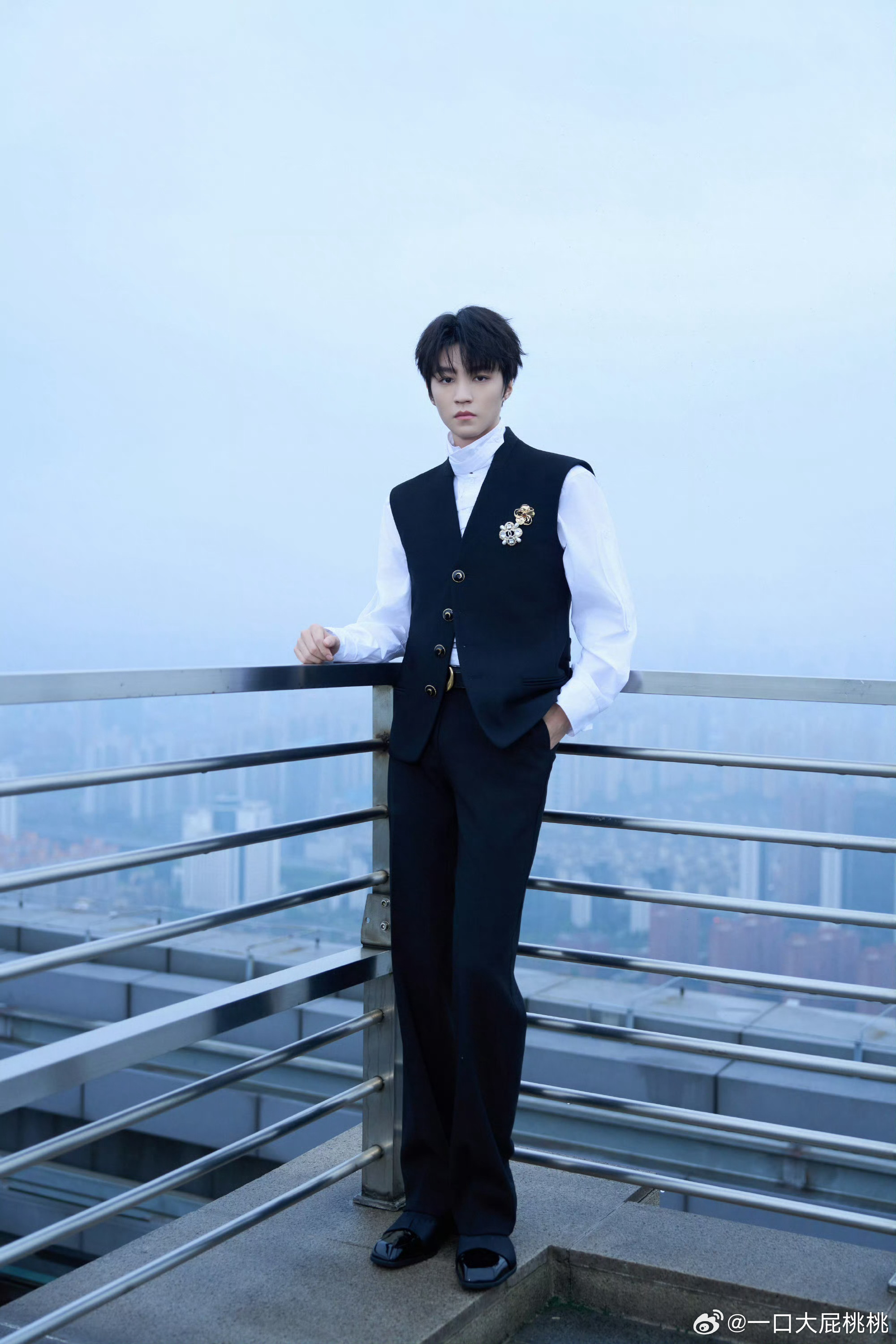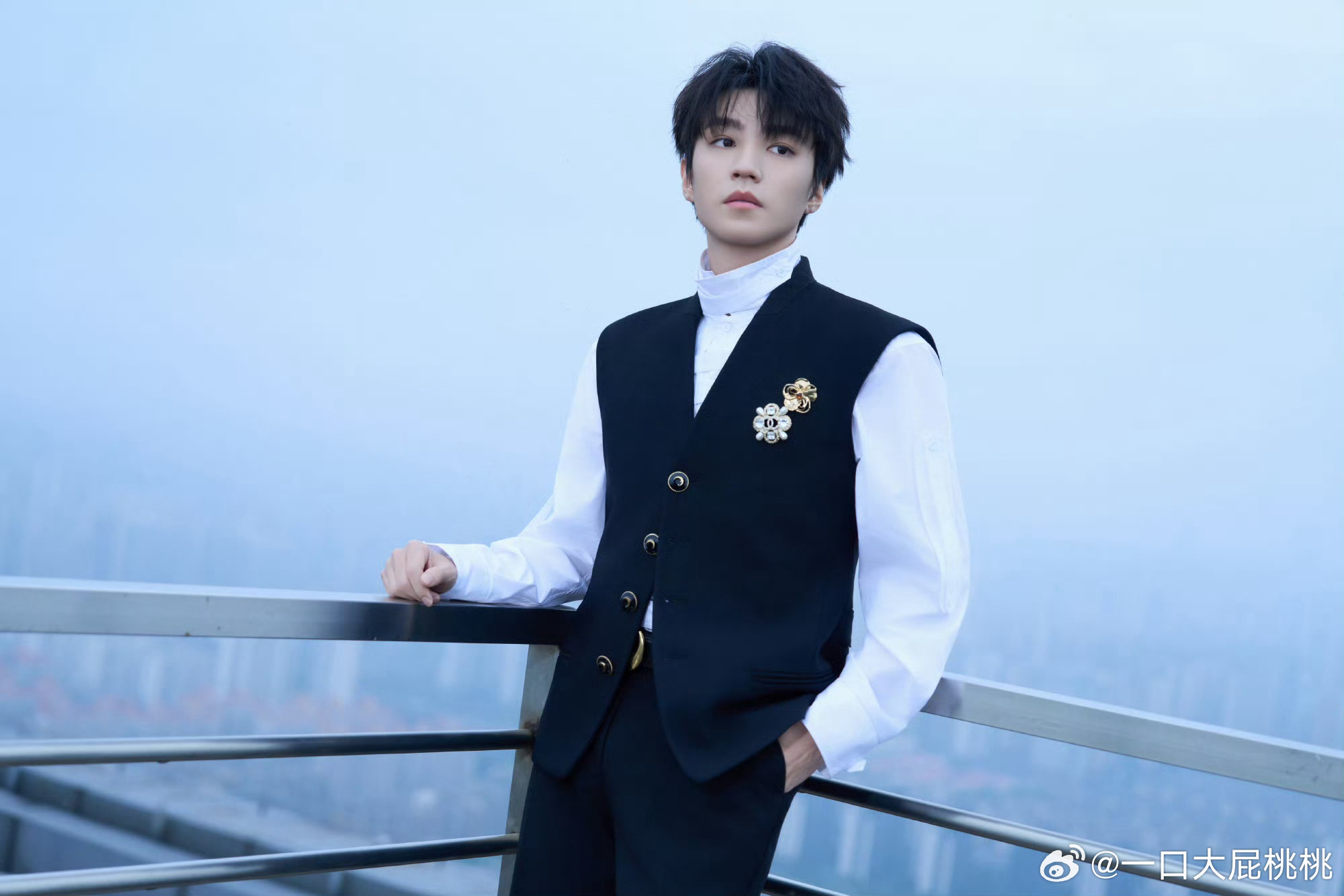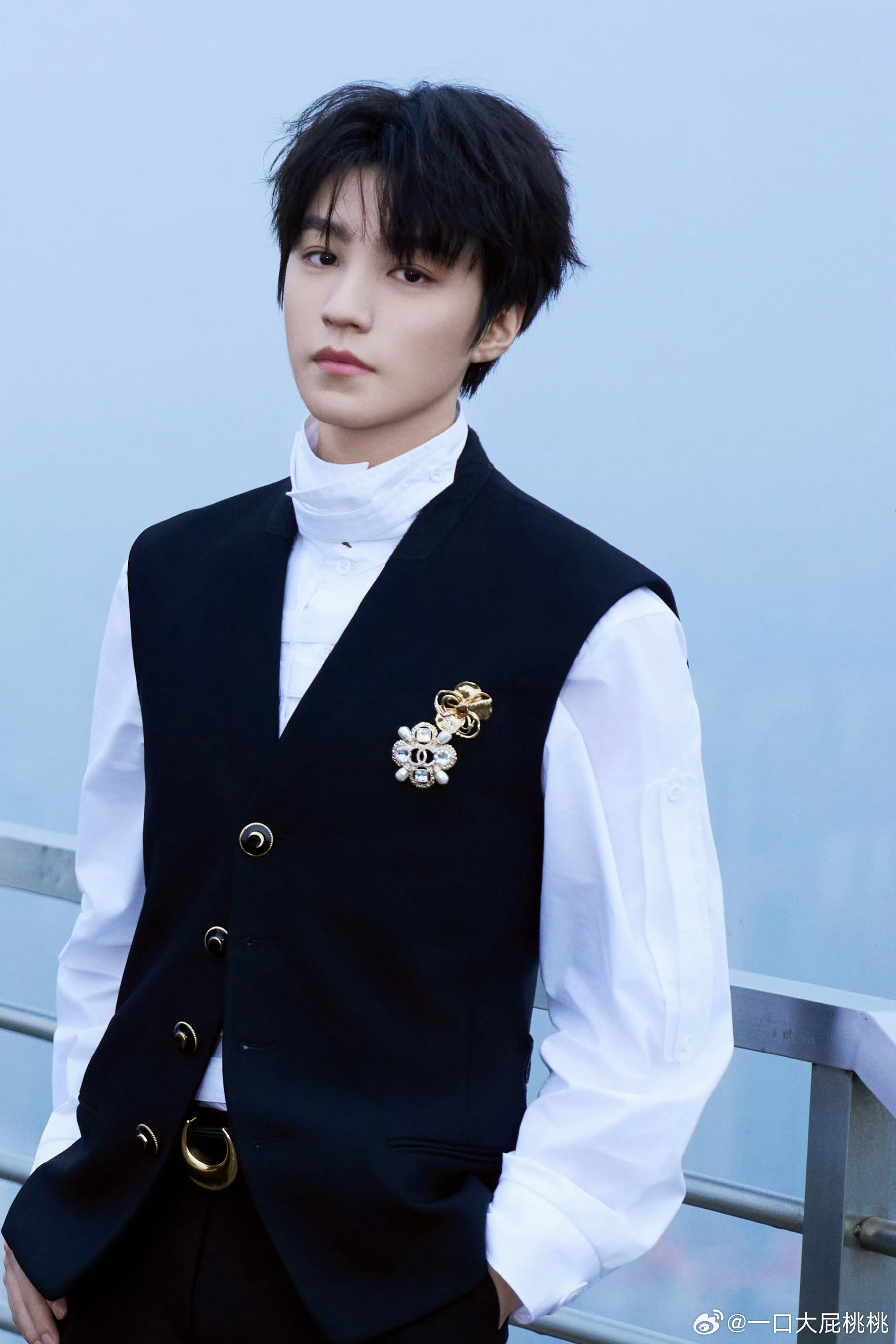 王俊凯浪姐2026亮相造型,黑色马甲CRAIG GREEN白色高领衬衫搭配 CHANEL 胸针,贵族公子范儿!合作香了