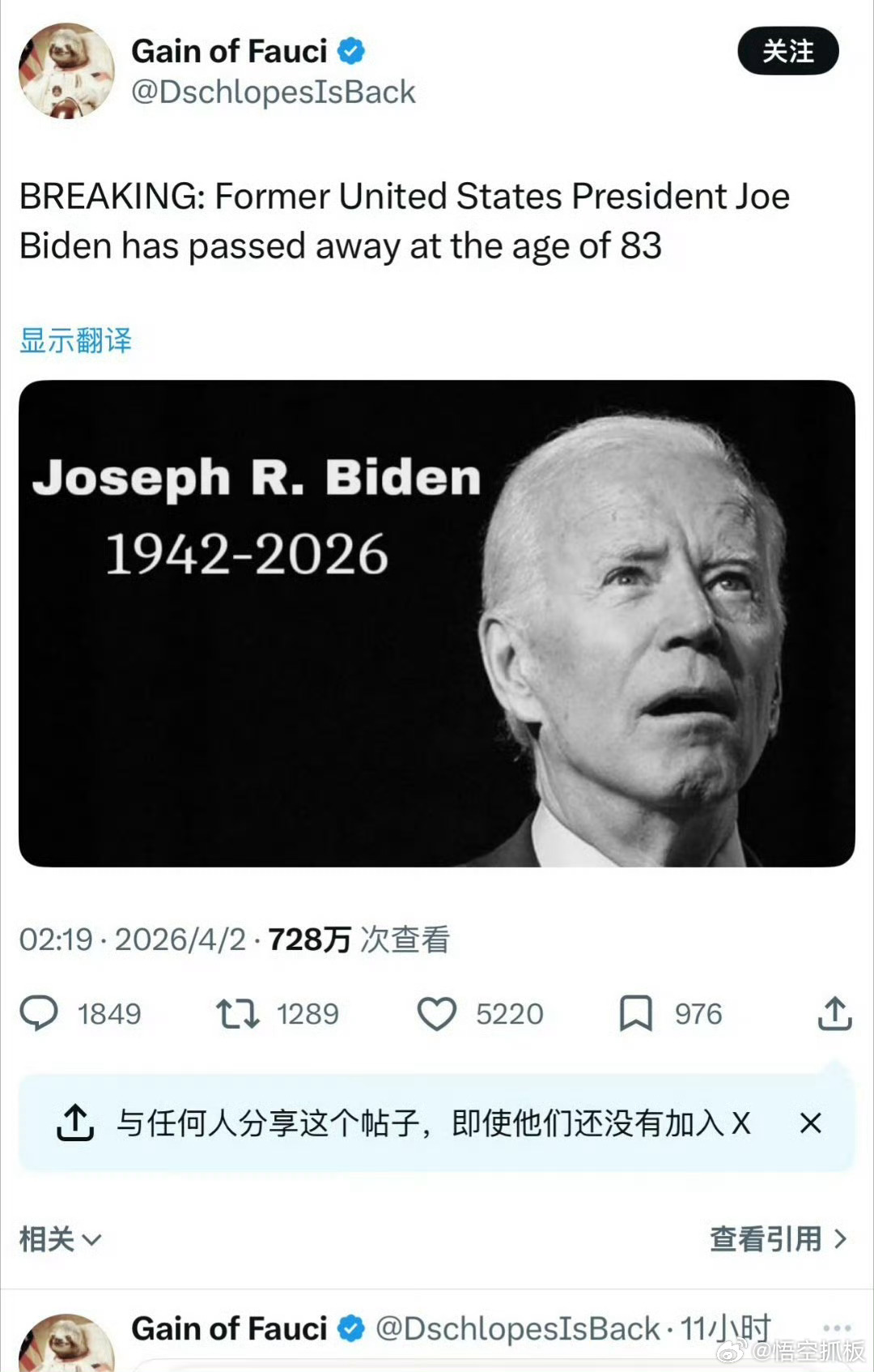 拜登真的假的,看了一下推文都800多万,今天可是美国愚人节