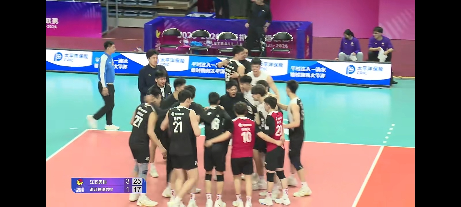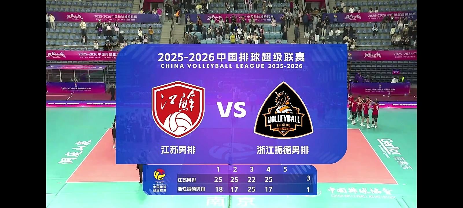 排超联赛 男排季后升降级赛,第四局江苏男排25比17浙江男排,3比1获得胜利,成功保级。第四局上来就6比1领先,奠定了胜局,浙江这边前半局还短暂迫近比分,到了后半段直接没啥士气了,然后教练也没有任何换人什么的变化,坐等失利!中国男排中国男排