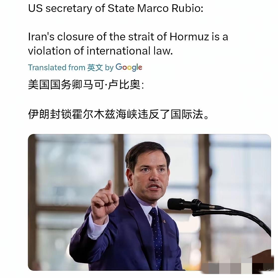 也不知,美国国务卿鲁比奥是被特朗普带坏了,还是他的脑袋被特朗普带坏了,他居然能说出“伊朗封锁霍尔木兹海峡违反了国际法”这种好像谁都不知道,只有他知道,事实上谁都知道的事。而且,在接受媒体采访时大骂伊朗外长阿拉格齐“是个大骗子”:“大约一两周前,这家伙上电视宣称,伊朗没有超过某种射程的导弹,然后——他们发射了两枚(——我们信了他的话!)” 这证明了一件事,即,一个人在特朗普身边呆久了,脑子也会变呆了,不但会变的分不出真话假话了,而且还会变的把谁都当成了特朗普。