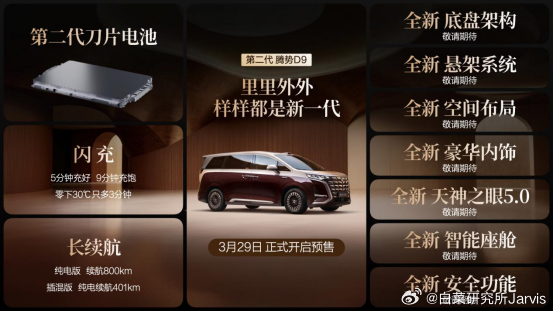 全新腾势D9开启预售,价格区间38.98万至48.98万元。相比老款,这个定价信