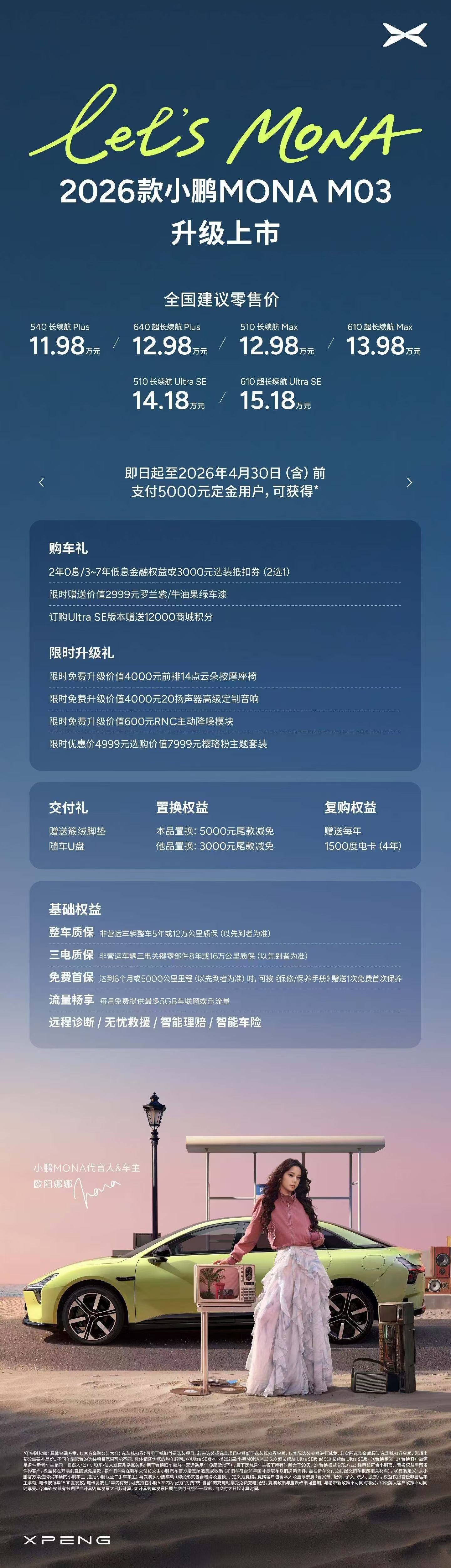 【12万9800就能拥有640 公里纯电续航】2026 款小鹏 MONA M03正式上市,有 6 款不同配置,最主要是延续之前的激进售价,区间为 11.98 万-15.18 万元。
