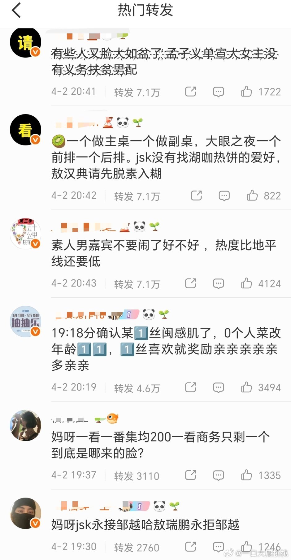 两手这个饼敖家不太喜欢看来,已经交流起来了,不过孟姐粉丝更强一点