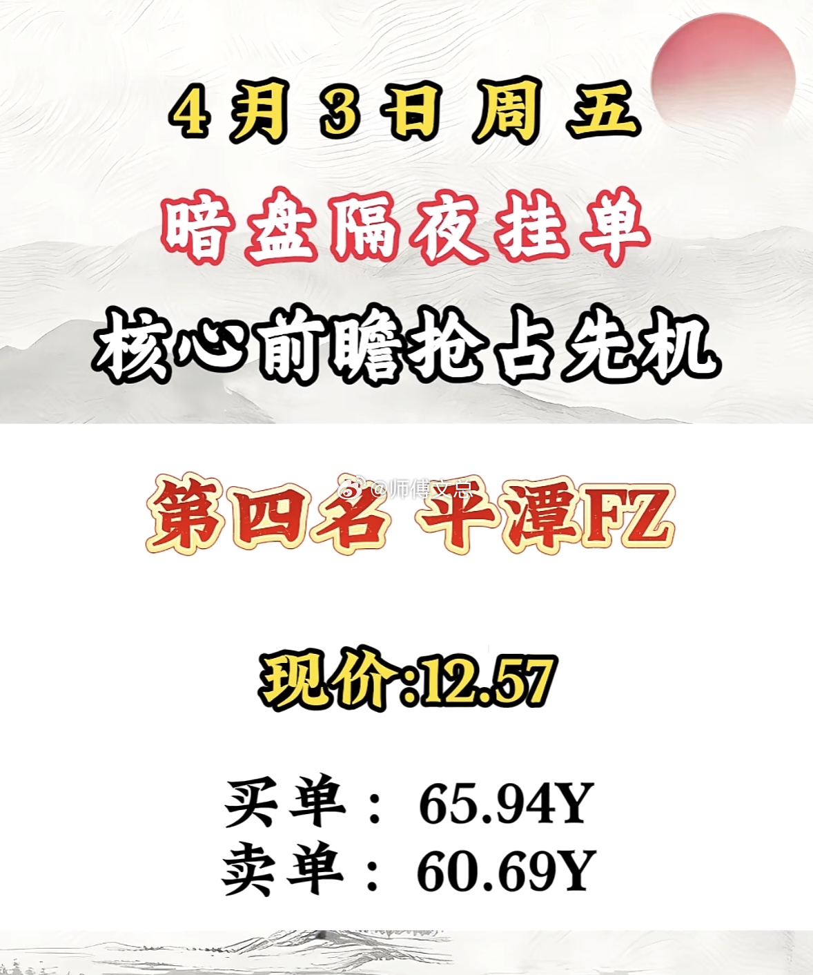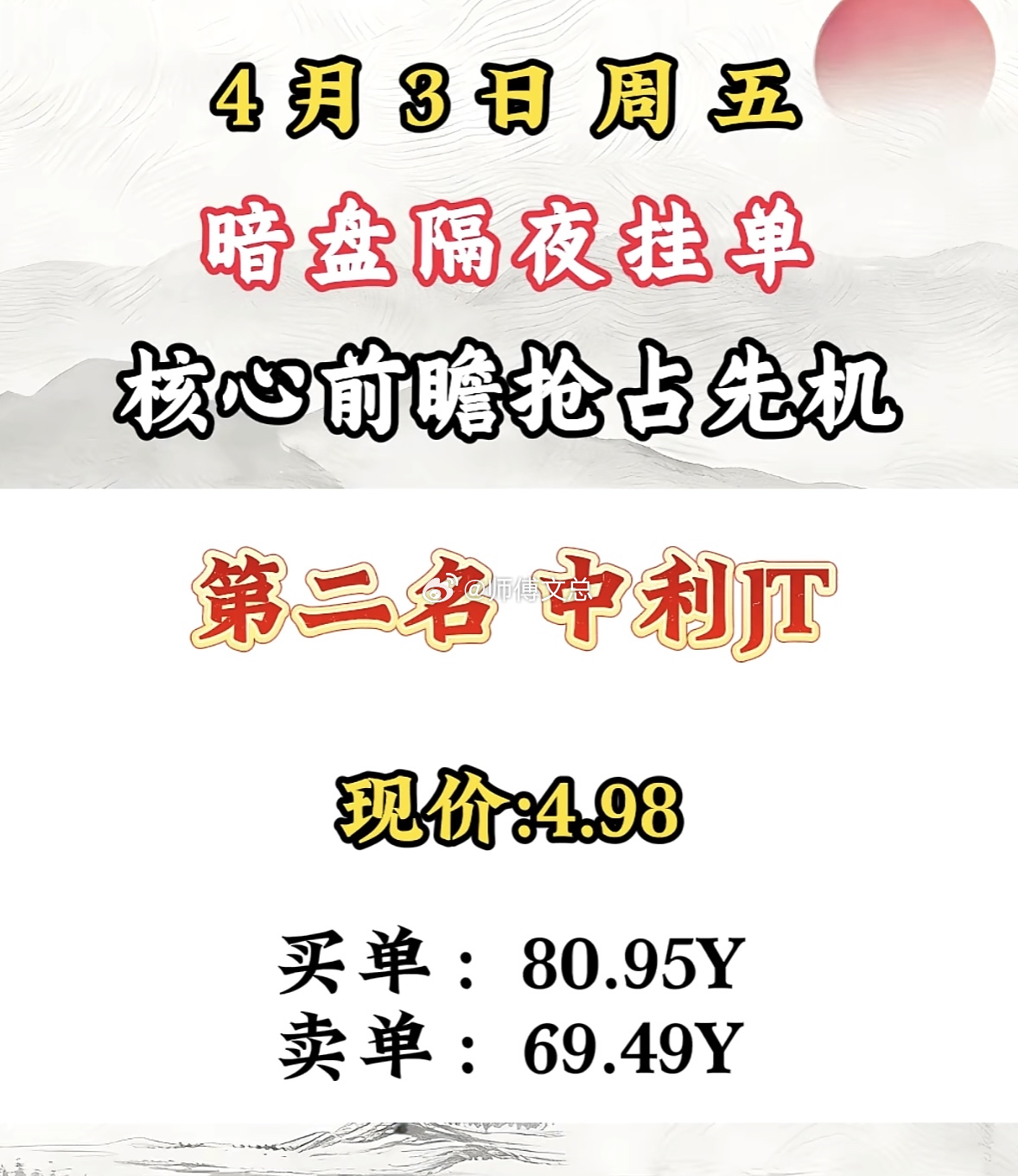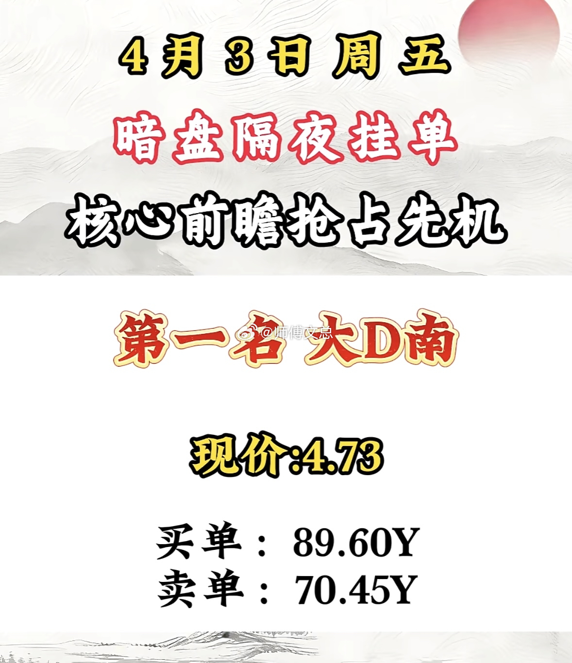 4月3日暗盘隔夜挂单,那可是抢占先机的好机会!就像3月13日暗盘隔夜挂单,多只个股获大量资金关注。像豫能控股挂单42.24亿,在绿色电力等领域有布局;中国电建挂单53.67亿,是电力建设龙头。
