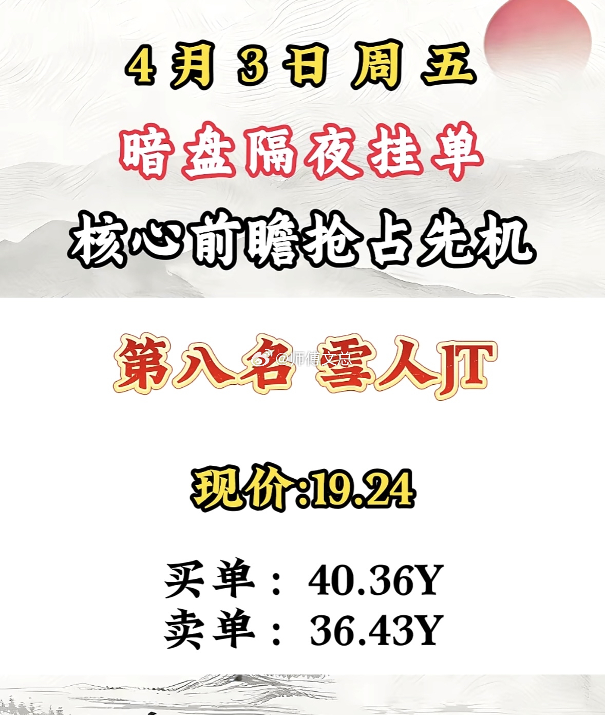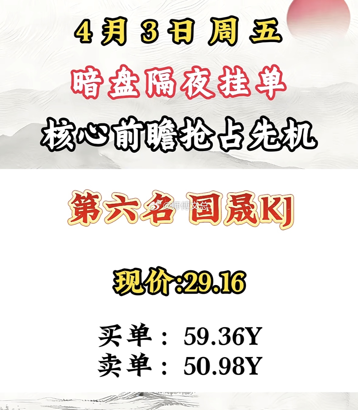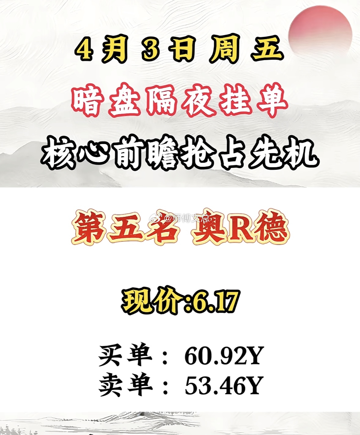 4月3日暗盘隔夜挂单,那可是抢占先机的好机会!就像3月13日暗盘隔夜挂单,多只个股获大量资金关注。像豫能控股挂单42.24亿,在绿色电力等领域有布局;中国电建挂单53.67亿,是电力建设龙头。