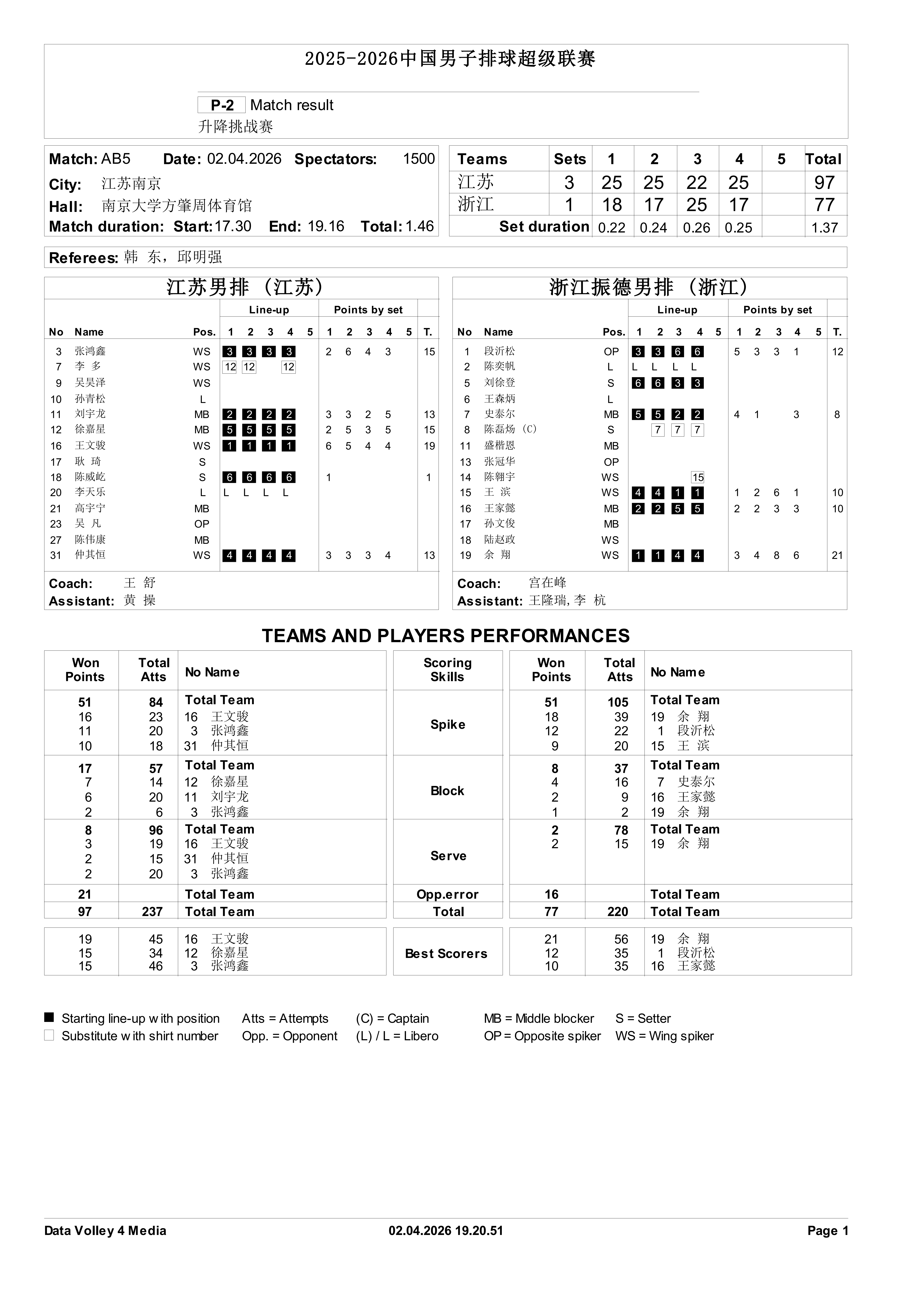 排球排超联赛 今天男排季后升降机赛,江苏男排3比1浙江男排,江苏队两个主攻仲其恒、王文骏一传和进攻都很稳,二传陈威屹组织得力,5个攻手得分齐上双,多点开花,尤其是仲其恒和去年相比进步很大,年轻球员正是涨球的年纪,真的是要多打比赛!中国男排中国男排