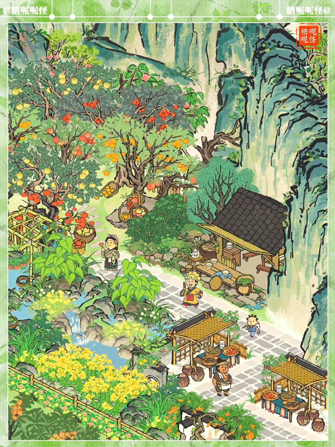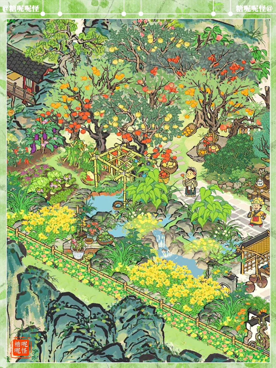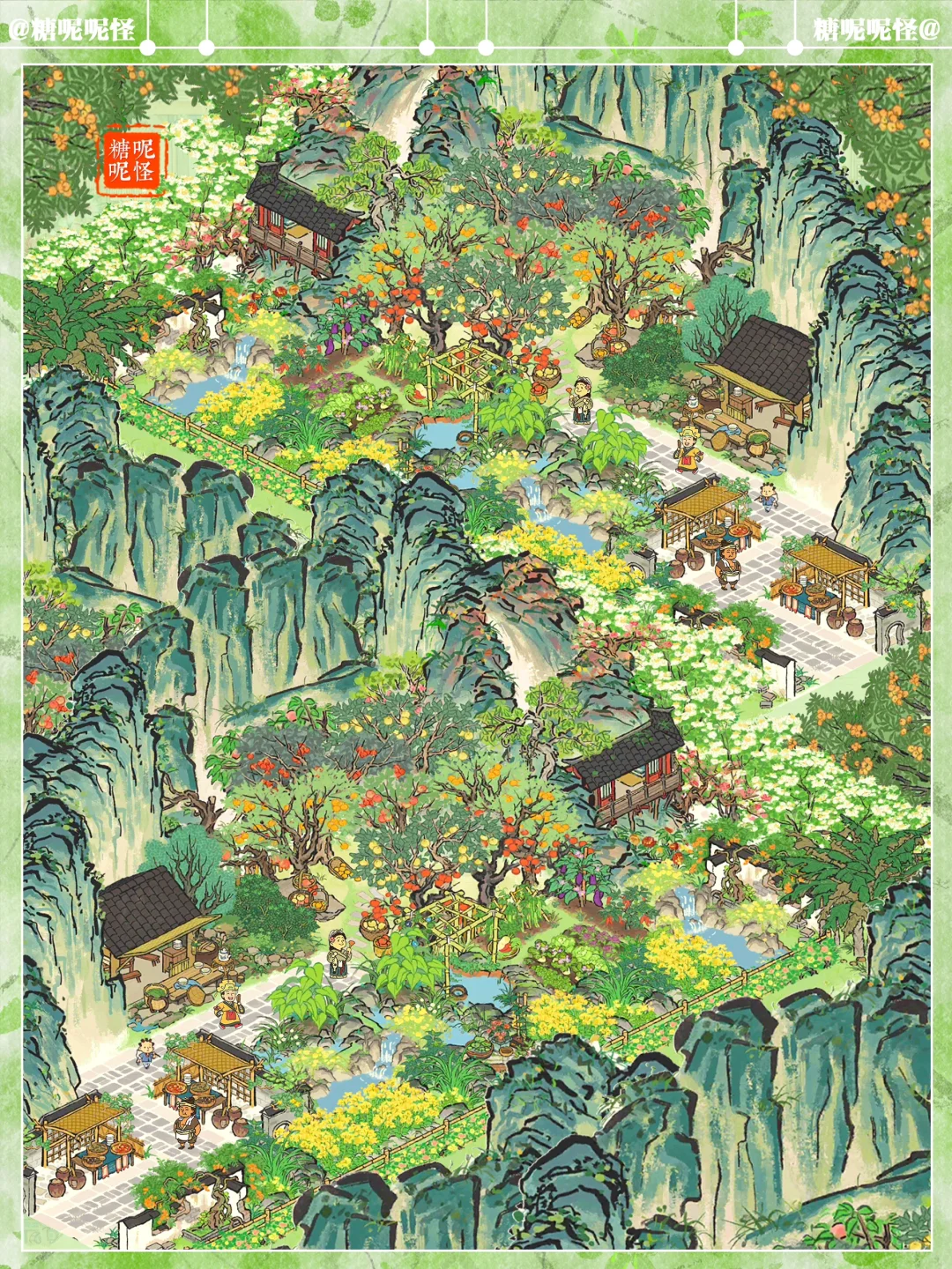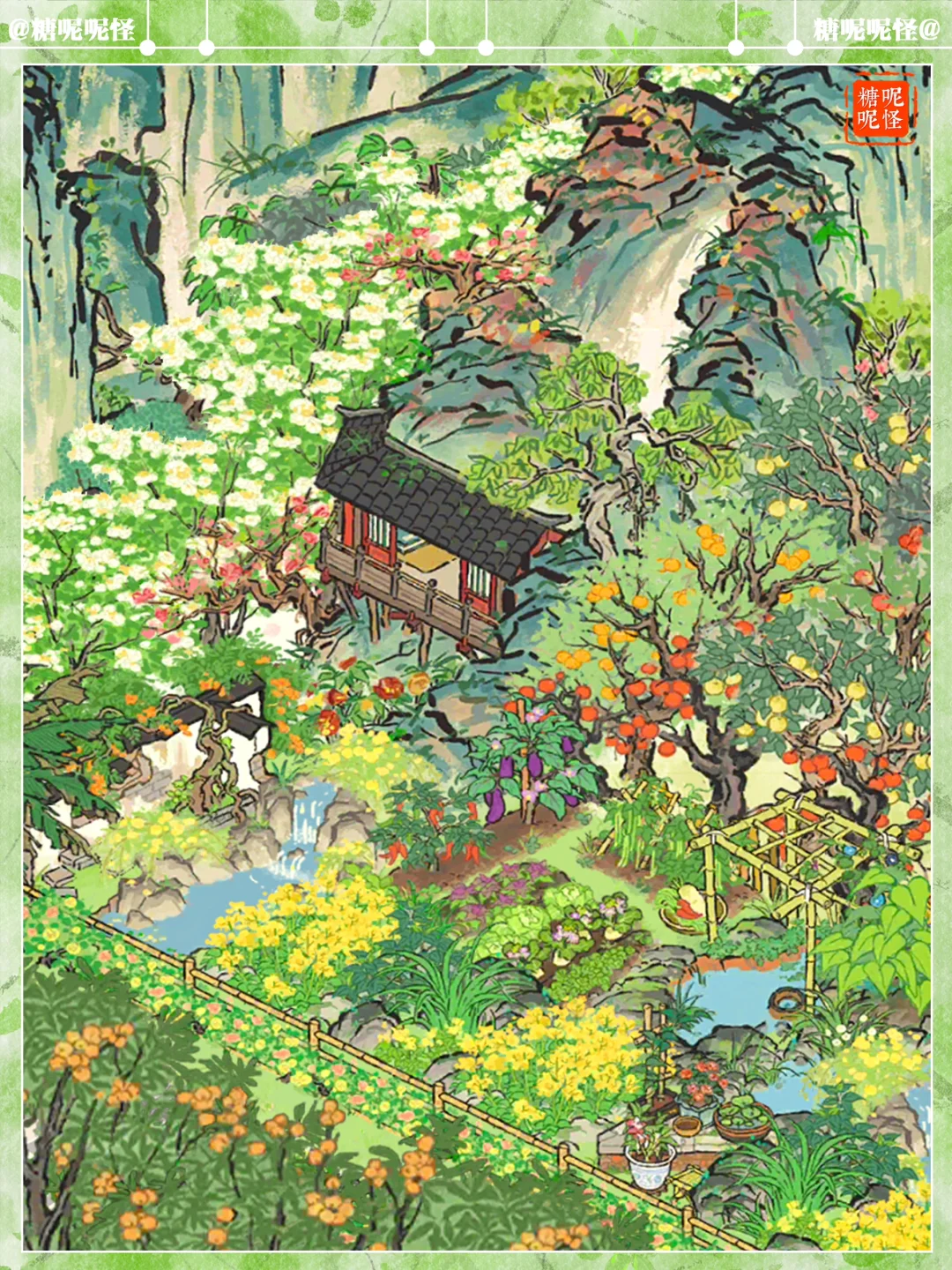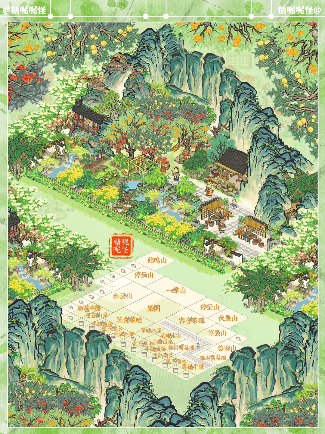 💚伴山茶室|缤纷果园 💚建筑:果园|客舍茶摊|疏食菜畦|叠云山|停云山|鹤鸣山|伏鹿山|墙花半隐|半亩油菜|乱石灌木