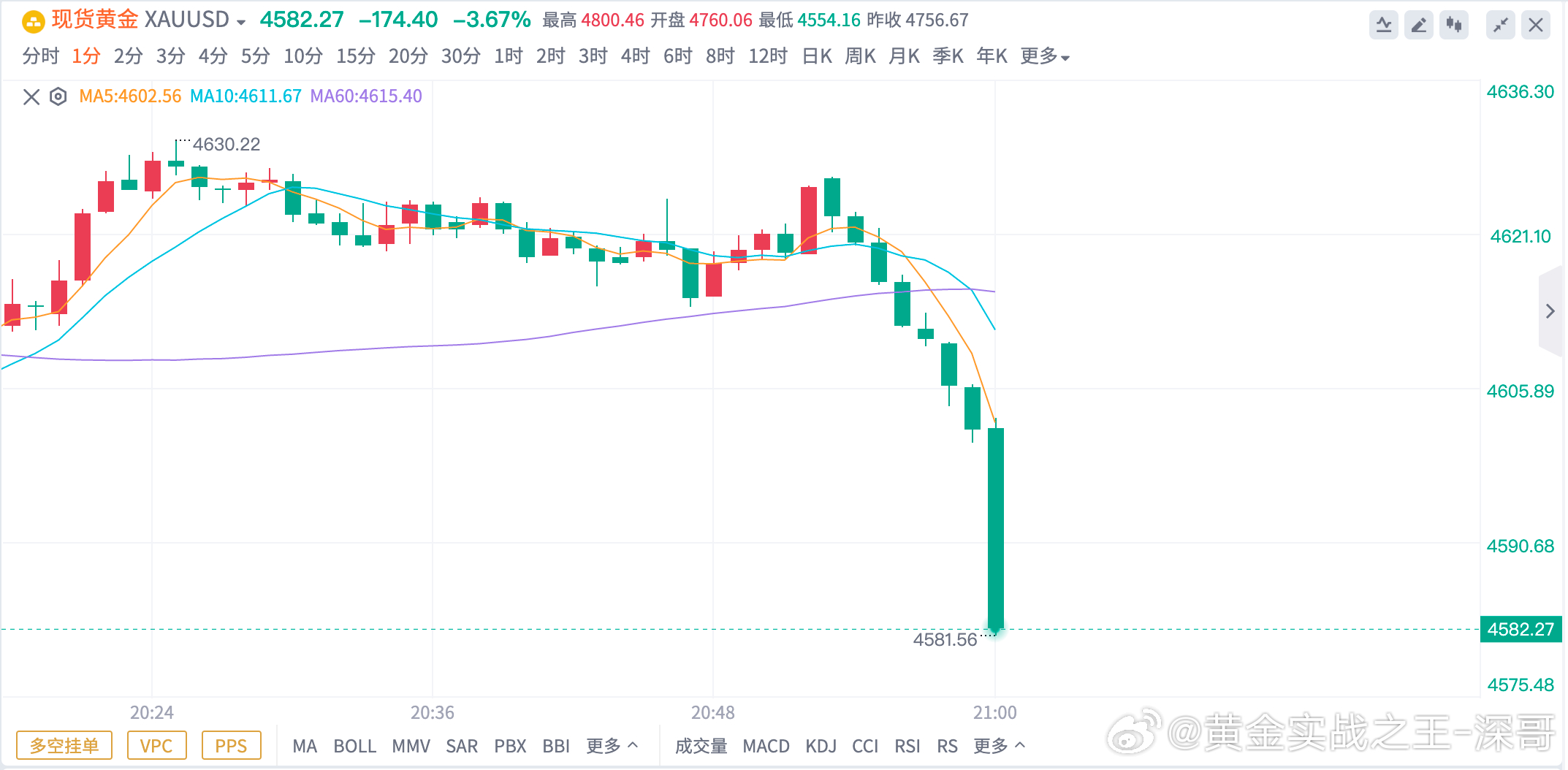 黄金金价金价瀑布式下跌
