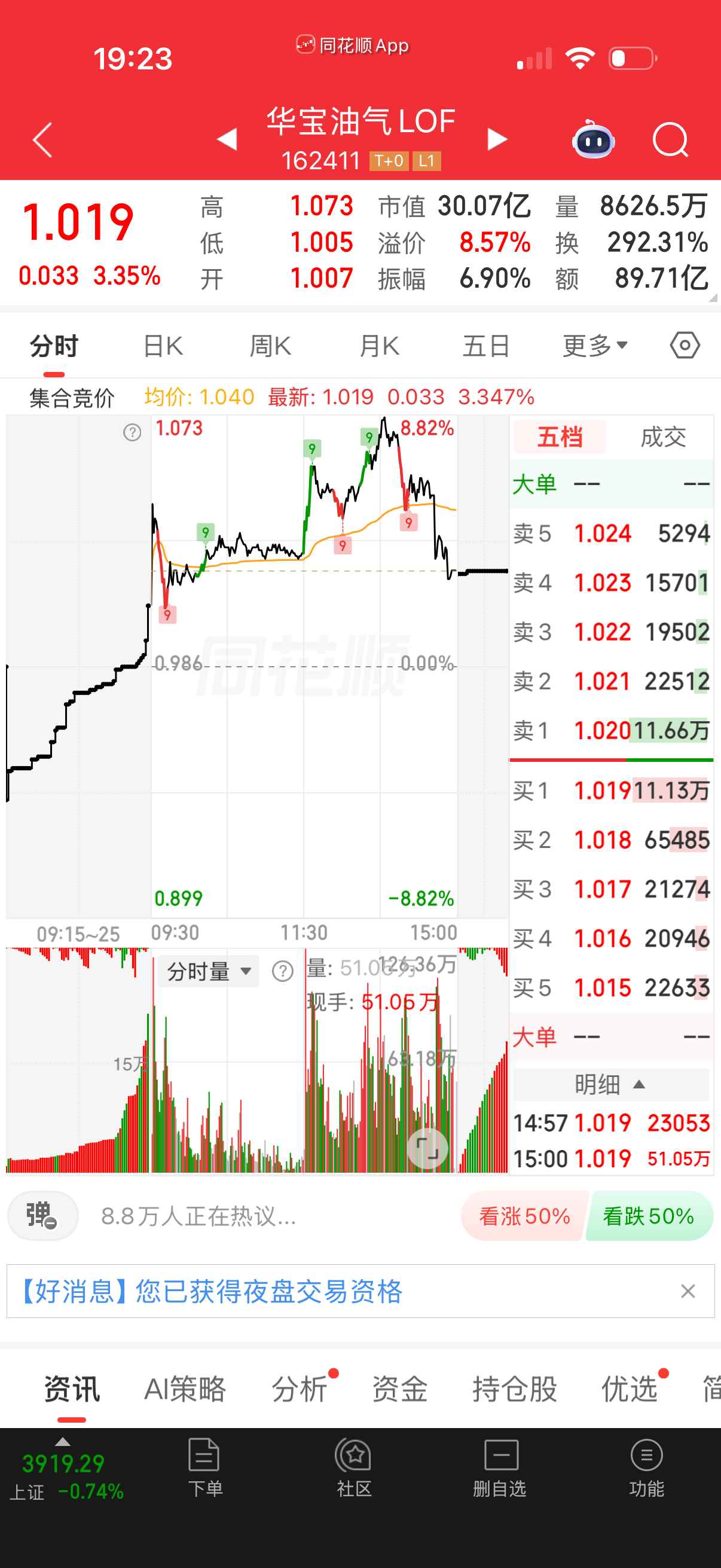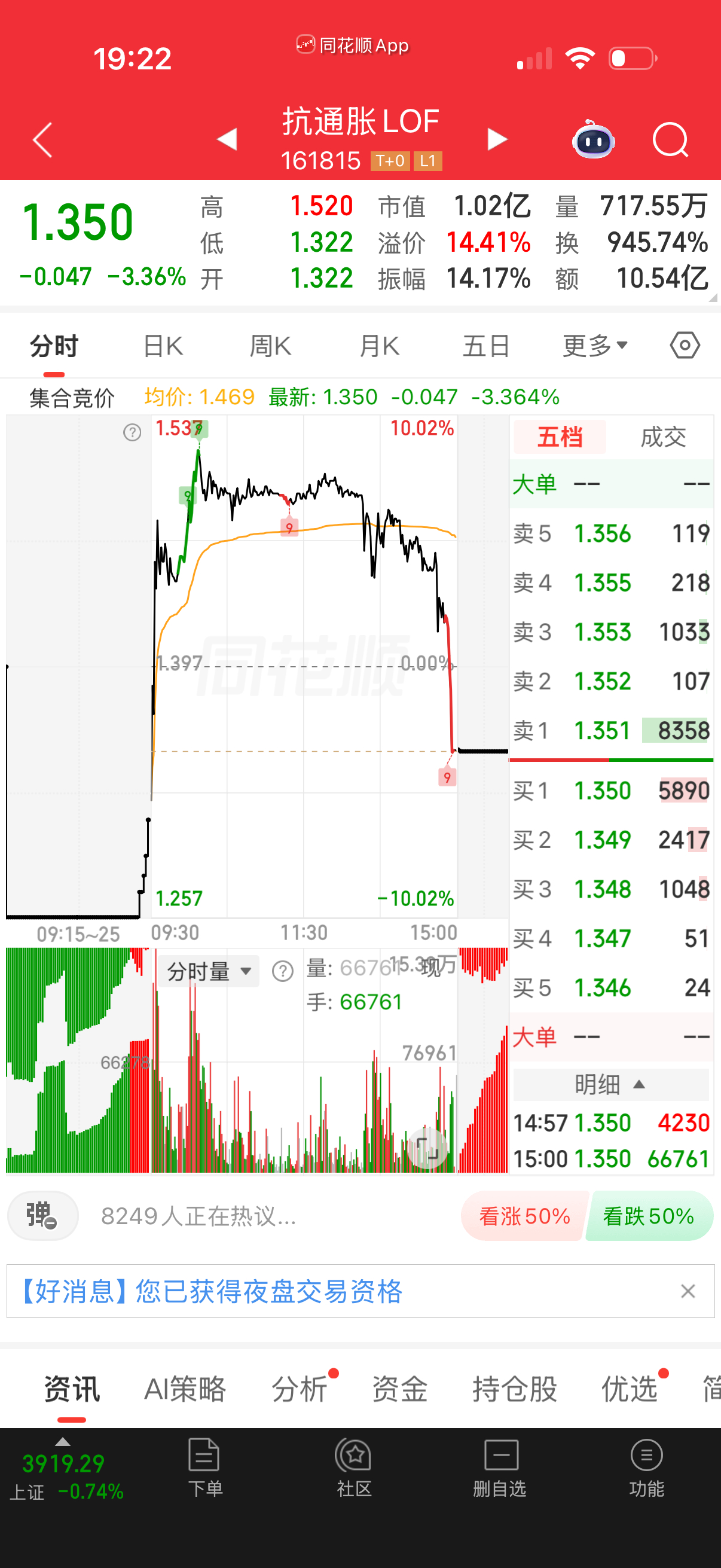 还好尾盘没去买抗通胀,华宝尾盘也掉了。游资炒作经常会这样。