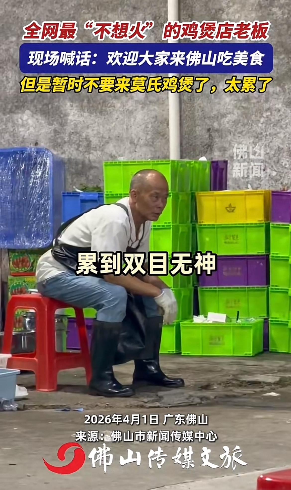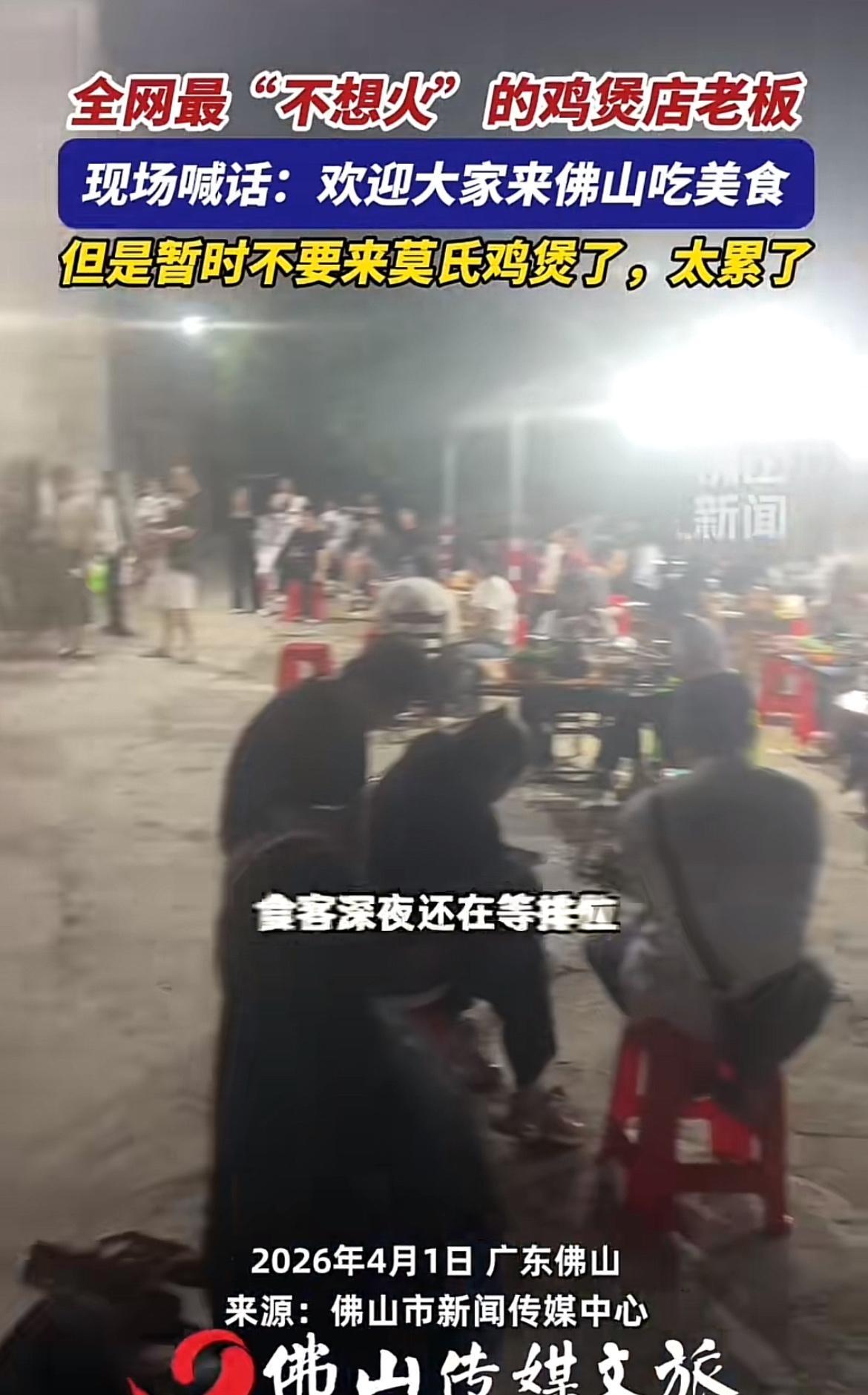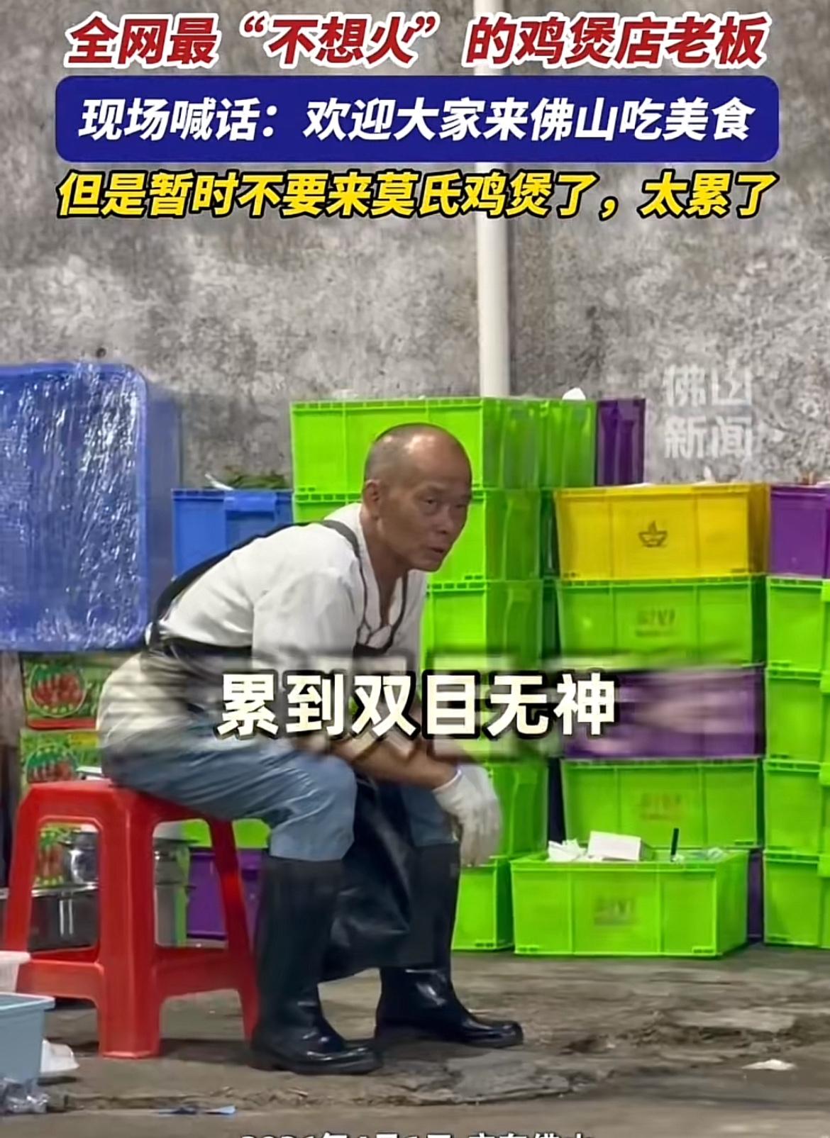 广东有家莫氏鸡煲店火出圈了,不过火的不是味道,而是老板那句“求你们别来了,我真杀不过来了”。原本平平无奇的小店,因网上探店内容被众人知晓。老板之前不想配合拍摄,不想把店变成打卡地,这反倒激起大家的好奇心。 原本一天做几十桌,现在突然暴增到500桌,后厨忙得晕头转向,杀鸡、切配、煲汤,一刻不停。老板累得满眼红血丝,蹲在马路牙子上抽闷烟。别家店求流量盼客流,他却想赶客。毕竟街边小店产能有限,忙不过来啊。这种真实不做作,反倒让很多人信任,也吸引了不少人。