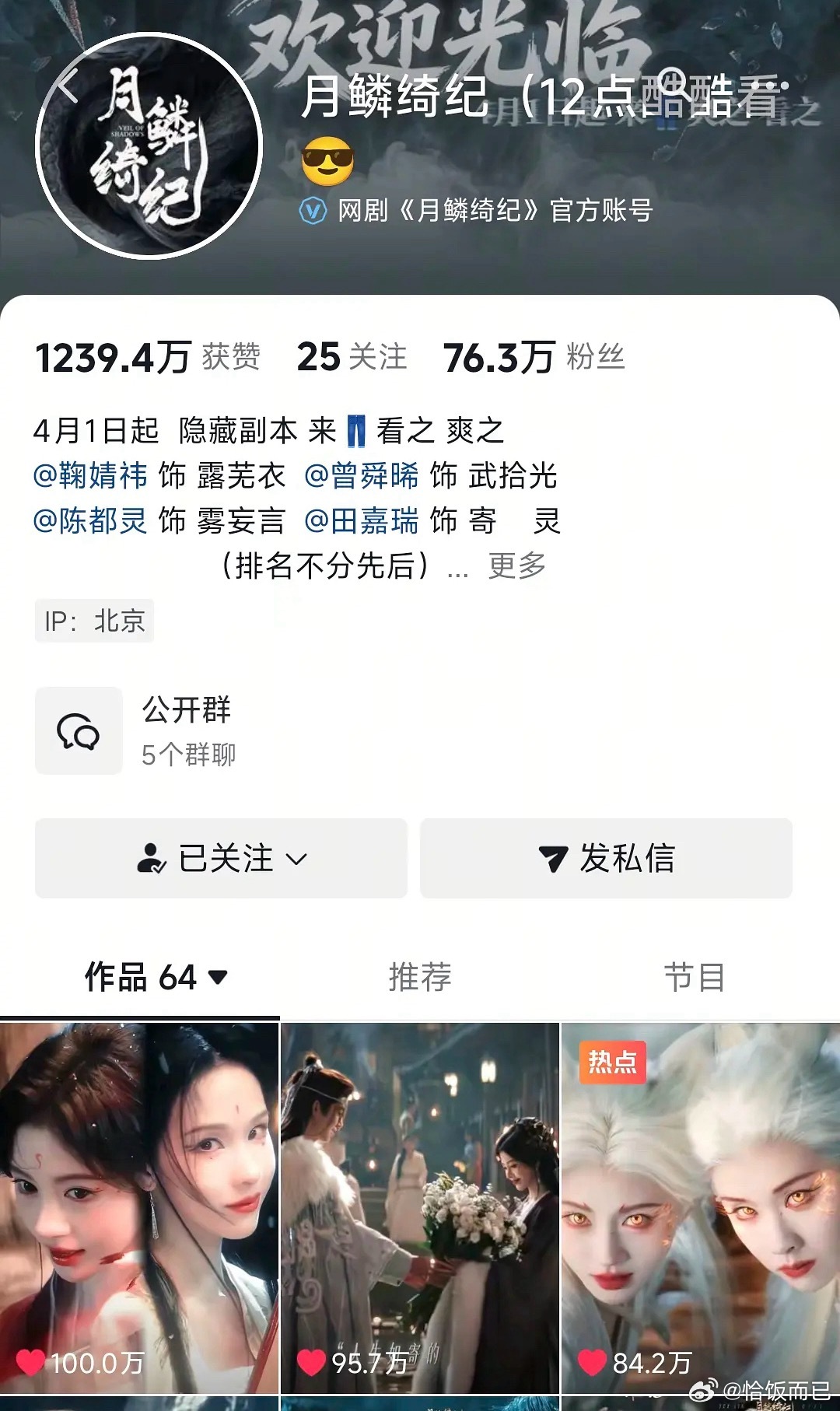 月鳞绮纪官抖首个百万赞来了!鞠婧祎陈都灵双人视频百万赞下沉市场有两个了