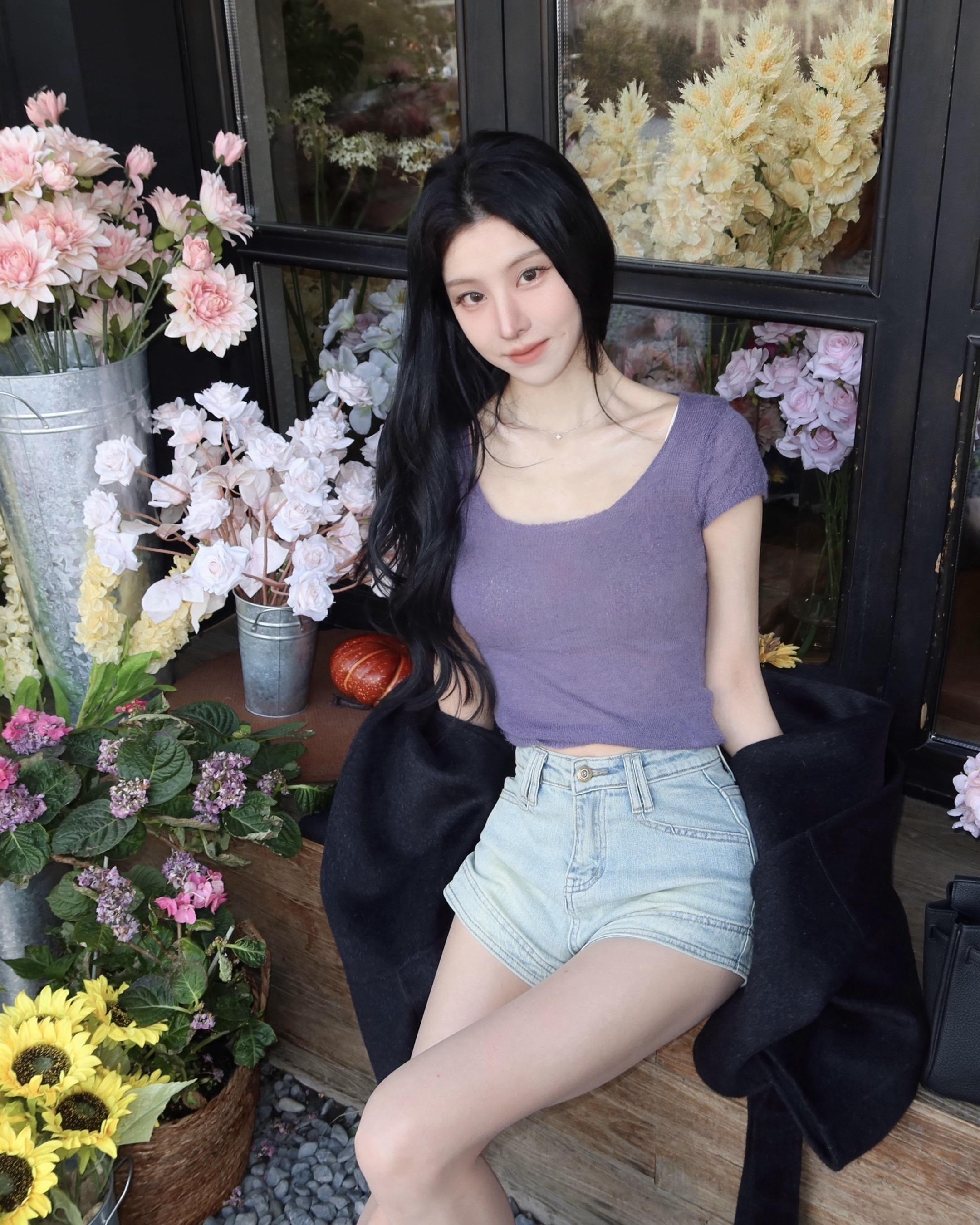 吴千语真的是随便一件黑格子衬衣加牛仔裤就特别的有型,她真的是十足的“老钱风”,越