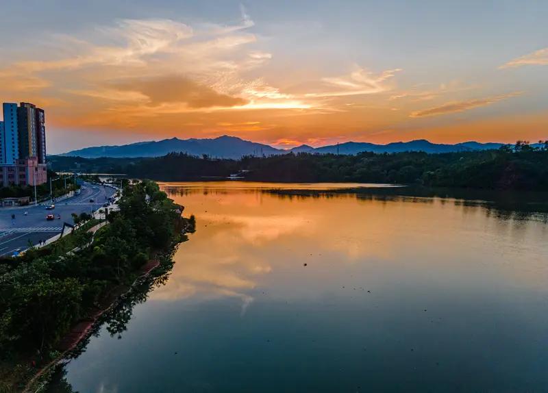 上联:碧水悠悠映晚霞,下联青山隐隐沐晨晖。