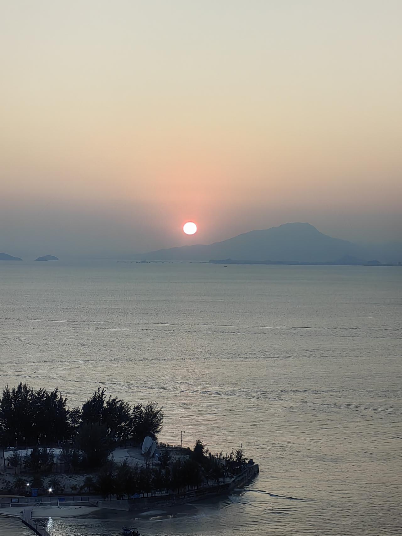 傍晚,我漫步在海边,静静等待日落的到来。 太阳开始缓缓下沉,它不再那么刺眼,原本蔚蓝的天空,渐渐被这金色晕染成一片浅橙,天空犹如披上了一件轻柔的纱衣。太阳悬浮在海天之间,散发着无与伦比的光晖,这正是“夕阳无限好,满天尽晚霞”。