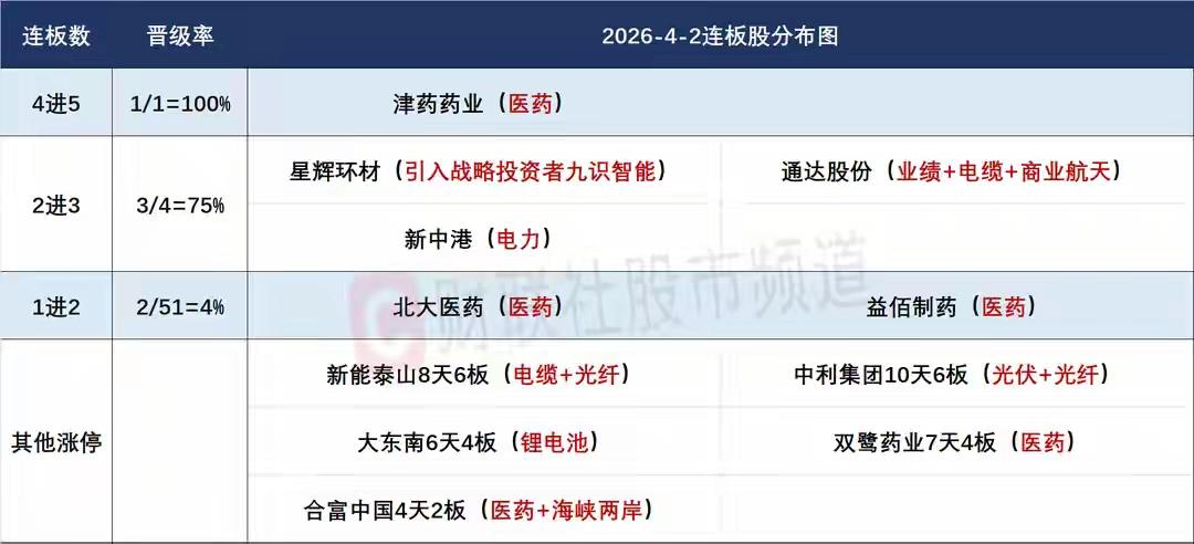 4月3日盘前预案:医药兑现分歧依然看点十足;短线操作关注低位情绪活跃标的! 1、受中东情绪影响,昨天的市场出现了较为明显调整,但是隔夜美股出现了低开高走表现,那么从情绪上看,隔日指数可能并不会很难看,但是市场量能再次降到了1.8万亿,再结合近期整体量能趋势看,短时间内想要出现爆发行情很难,那么指数依然会是个震荡筑底过程,所以从指数上看,短期就是在3900点附近震荡,只有等中东情绪完全缓和,GJD或许会进场引导拉升,所以接下来的一段时间,市场整体可能依然就是部分投机资金和量化在活跃,出现大幅增量资金的概率非常低,这样的话,市场整体可能还是会走的比较泥泞! 2、医药的炒作已经有一段时间了,从美诺华走出5板到现在的津药5板,整整8个交易日都是有涨停股的,特别是美诺华断板后,整个医药方向走出了一波加速的行情,但是这种加速反而会是板块情绪分歧的开始,就看板块整体的分歧强度了,如果津药明天能渡劫成功,整个医药方向是可以高看一眼的,那么就会有资金在这个弱势市场上去反复炒作这个题材,而且美诺华断板后,整体趋势非常不错,5日线有强支撑,这样的表现是可以对标绿电的华能的,而一旦津药能拓展高度,那么华辽的对标也会出现,这样的话,医药走成市场绝对主线就会是大概率,所以隔日津药的表态非常重要! 隔日津药开盘方向的选择非常重要,如果它能开盘就有资金去承接拉升,那么它晋级6板是可以期待的,但是同时整个医药板块的反馈非常重要,如果是小分歧,那么开盘就很可能出现共振上涨,反之,一旦大分歧,津药的抛压就会非常大,能不能顶住就真的很难说了,所以津药从情绪上看,它竞价最好是不要太弱,一旦太弱,资金拉升信心不足的情况下一旦碰到板块负反馈,就很可能走出冲高兑现的走势,而只要竞价有实实在在的资金引导,至少在分歧中只要有资金承接,龙头接力资金反而容易形成合力,所以隔日津药能否4个点左右高开去上板值得关注,开的太高或太低反而更不容易去接力! 北大分歧放量晋级2板,但是2进3的凯莱英失败,但是整体趋势不错,而竞价明显强于北大的海王反而走出高开兑现,所以从情绪上看,医药的强度相比之前的绿电,还是要差很多,那么北大这种中位股反而就没有特别大的接力价值,特别是明天医药是分歧预期! 双鹭尾盘上板走出了非常强势的连续大阳线后的再次涨停,从情绪上看,这只个股表现是超强的,有点类似绿电行情中走出来的一些趋势股,比如金开、能科,只要医药板块能够持续,双鹭可能很难连板,但是趋势中经常性的出现涨停反转可能会是大概率的,所以这只个股可能不适合连板接力,但是接下来或许会有5日线强支撑的低吸机会! 合富午后随着医药商业走强,这有点当初炒作海峡9板结束后,合富再次跟随同泰走出了一波趋势连板的感觉,这次同样是跟随平潭启动后再次赶上医药行情,合富隔日能否强势表现就非常有看点了,从情绪上看,就算医药整体大分歧,但是不排除资金会进行高低切,而合富还有海峡属性加成,一旦它竞价非常强势,它是很可能走成当初绿电方向类似中闽的表现! 3、算电协同整体持续走弱,特别是华辽和华能两只近期最具辨识度的个股持续杀跌,这样的情况下,前期大幅炒作的后排出现了明显崩塌式的A杀,这说明板块整体是退潮明显,虽然依然有个股涨停,但是从情绪上已经彻底退潮,就像商业航天退潮时,依然出现过巨力的补涨,但是板块效应非常弱,所以对于这个方向,情绪上应该轻板块重个股! 通达在这样的预期下走出三板,它能如此强势,和年报大幅增长有关,而电缆和商业航天属性是加分项,再加上背靠上医疗器械概念,总得来说,通达就是到处蹭,但是昨天三板是强分歧晋级的,从情绪上今天就是断板预期,除非开盘能够迅速出现弱转强信号,总得来说,对于通达,不用过度看空,但是从接力的角度上看,确实已经没有很好的性价比了! 中利也是智能电网个股,它昨天强势涨停更多的是因为光纤的强势,这只个股也是反复活跃,从情绪上看,它今天能否快速突破前期高点是一大看点,如果能够非常强势的突破,那么它适合很可能走出类似商业航天巨力的表现,所以对于中利来说,开盘后能否迅速拉升强势承接是一大看点! 泰山和中利的概念一致,它走出的4+1+1同样非常亮眼,但是比较难受的是断板的两天全部跌停,所以这只个股近期不是涨停就是跌停,节奏确实很难把握,而佛山在跌停割肉后,次日再次涨停杀回来,这确实挺意外的,不过泰山尾盘竞价出现严重漏单,隔日预期就要差很多,一旦开盘继续负反馈,佛山会如何选择就很难说了,从情绪上看,这只个股如果开盘有明显弱转强突破前期高点,同样会是市场资金接力最大的看点! 大东南则是算电协同叠加锂电材料概念,尾盘的放量涨停确实挺漂亮,而且整体趋势要好过中利和泰山,从情绪上看,一旦出现弱转强信号,它同样会是资金接力的重点方向,所以隔日中利、泰山和它谁开盘更强,市场认可度就会更强,也就更值得博弈!
