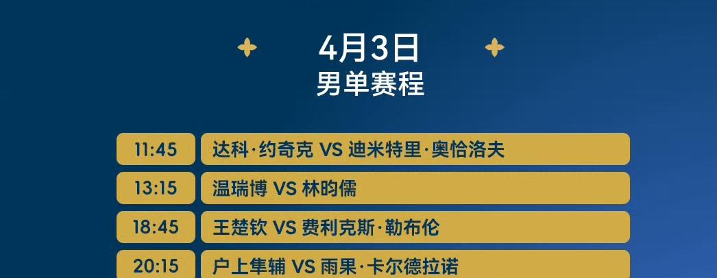 根据截至2026年4月3日的比赛结果,澳门单打世界杯的八强席位已产生一半。 🏓 女单八强(已产生4席) * 王曼昱 (中国) * 孙颖莎 (中国) * 王艺迪 (中国) * 沙宾·温特 (德国) 另外4个席位将在4月3日的比赛中产生,中国选手陈幸同11:00对阵迪亚兹。 🏓 男单八强(已产生4席) * 张本智和 (日本) * 松岛辉空 (日本) * 莫雷加德 (瑞典) * 艾利克斯·勒布伦 (法国) 另外4个席位也将在4月3日的比赛中产生,中国选手王楚钦和温瑞博将在当天出战。分别是13:15温瑞博VS林昀儒,18:45王楚钦VS小勒布伦。