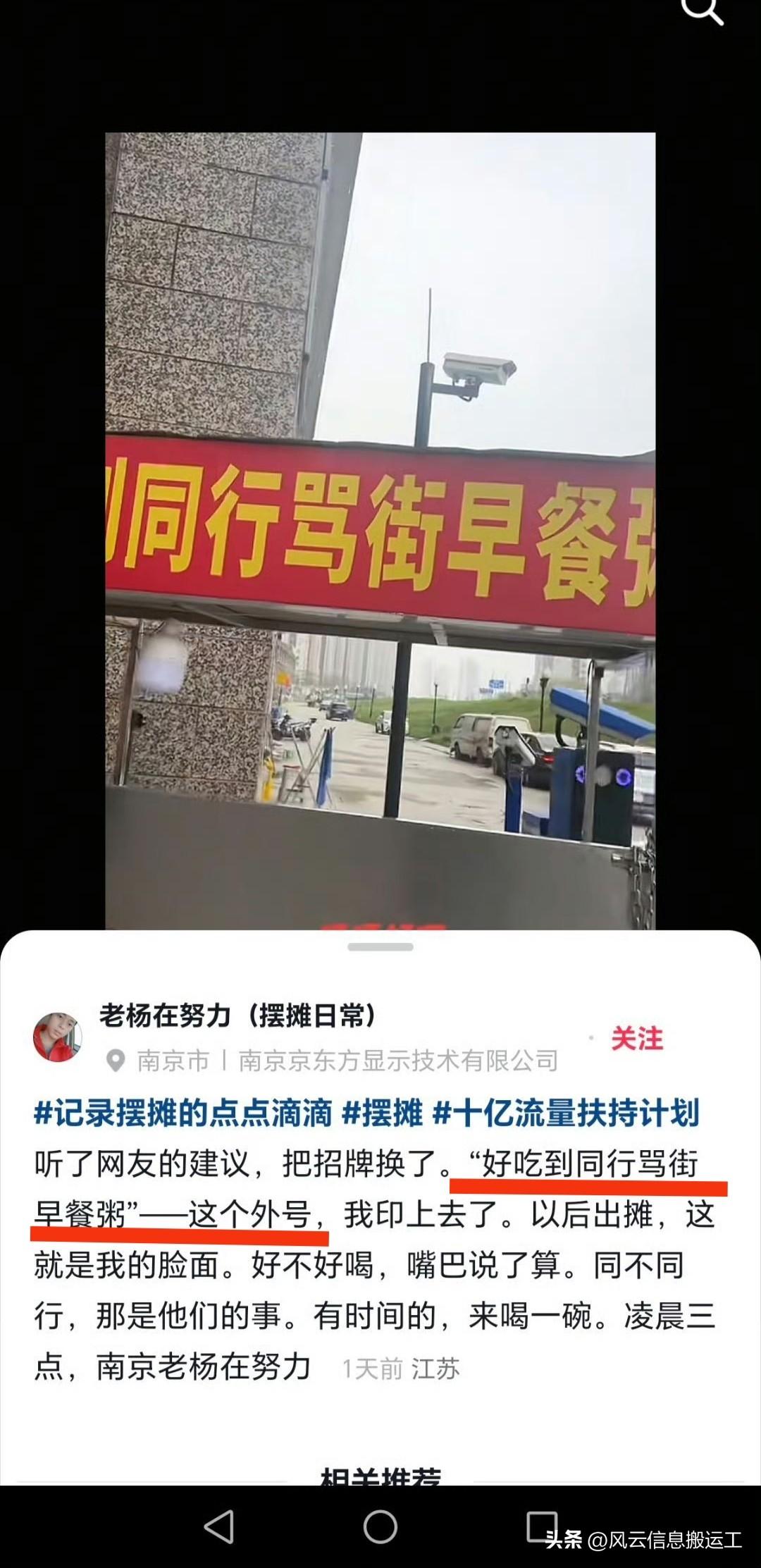 这大哥摆摊卖粥,干净,食材好,生意好,旁边摆摊的同行大妈眼红直接堵着他的摊位不让卖,谁来买就直接直接拦着开骂,说他粥有问题,吃了拉肚子什么的。 一开始大哥还有点发愁,把事情发上了网,结果摆的正好是大学附近,大学生压根不吃这大妈套,你越欺负人我越买,大哥生意好到起飞。每天东西卖光,也不跟这个大妈搭腔,你骂你的我卖我的。 评论区还有人评论说把摊子的名字改成:好吃到同行骂街早餐粥,大哥也是行动派,真把名字改了。