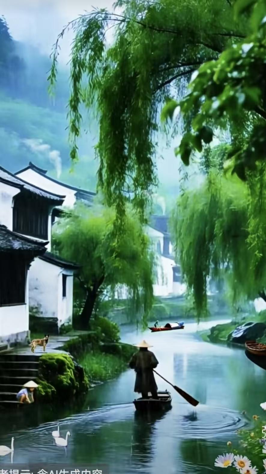塞鸿秋·江南雨 白墙浸雨青帘动, 乌篷摇碎云千重。 柳丝系住烟波梦, 檐珠滴破胭