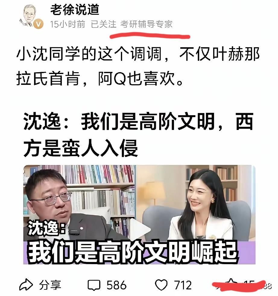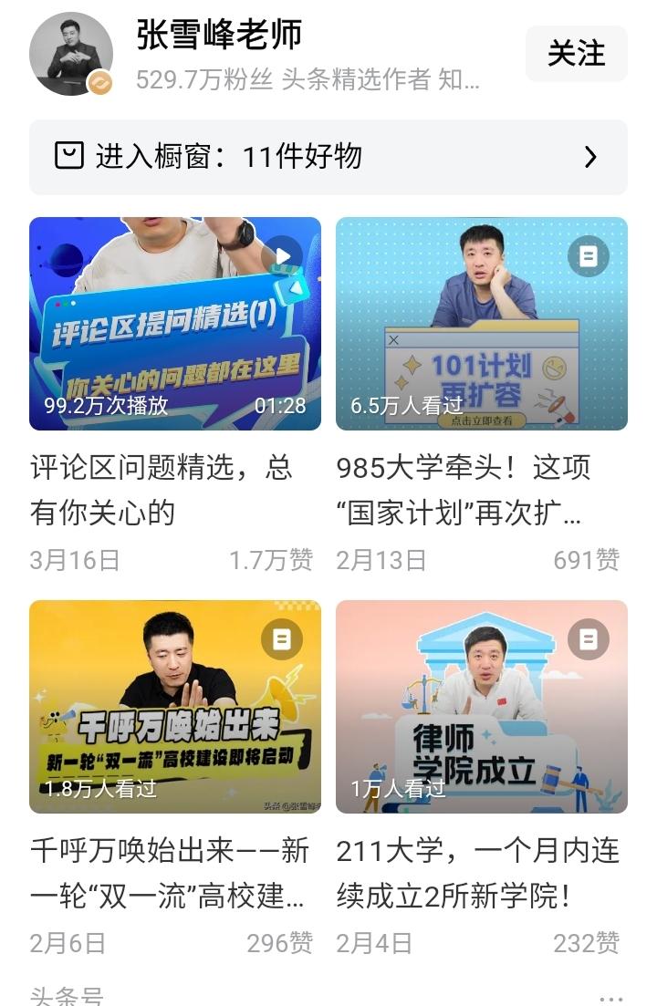 同样自称教育界人士,同样被认为是考研名师,张雪峰和徐老师,差距有点大啊, 张雪峰的头条号抖音号,全是有关考研以及高考的内容,为考生提供海量资讯, 很多人,包括我在内,包括孩子家长,都是通过高考和考研,认识张老师的, 徐老师的头条号,全是国际国内时事的点评,要么评论大V,要么评论国际大事,俄乌战争啥的,考研内容、学校资讯,一概没有, 很多人,包括我在内,都是通过他对正能量大V的嘲讽,以及对欧美国家的赞美,认识他的, 这就产生了一个问题,徐老师其实是个时事评论家,或者公共知识分子,但他偏偏标注“考研名师”,这是怎么回事? 那些搜索考研名师进来的学子们,不知是什么感觉?
