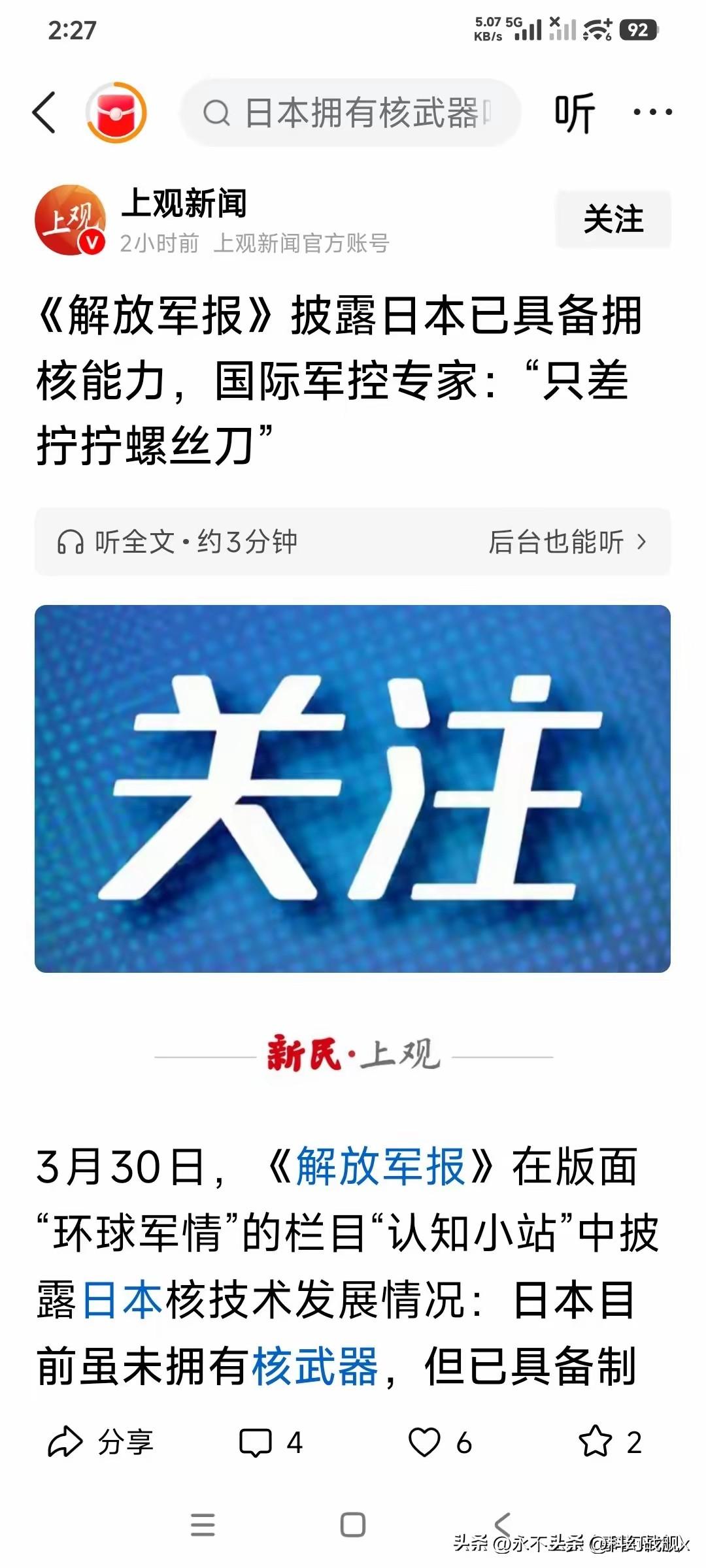 想想都恐怖! 日本手里有44.4吨钚。这东西是造核弹的关键材料。这么多钚,能造出5000枚核导弹。 一个二战战败国,哪来的这么多危险东西?太吓人了。 日本有《和平宪法》,说好了不搞军队,不发展进攻武器。可现在呢?全是摆设。 短程导弹、中程导弹、远程导弹,日本全都有了。海上还有“八八舰队”,四艘直升机航母。军事实力排全球第四。 这早就突破了战后的规定。一个战败国,偷偷摸摸把武器搞这么强。 更离谱的是,没人管他。国际原子能机构,为啥不去查查日本?这么多钚放那儿,到底想干嘛? 日本囤这么多钚,目的很明确。就是为将来某一天造核武器做准备。现在不造,是时机没到。 美国其实比谁都清楚。但他为啥不管?目的就是让日本在亚洲牵制别人。美国觉得日本是他的小弟,能控制住。 可万一日本真造出核弹,第一个报复的说不定就是美国。二战两颗原子弹的仇,日本可没忘。 爽的是,咱们中国现在在联合国说话有分量了。该站出来管管这事。不能让他这么乱来。 日本八成已经有核武器了。只是不想捅破窗户纸。不然他不敢这么明目张胆部署导弹。 这么下去,亚洲又得乱。一个不认错的国家,手里还握着能毁灭别人的东西。谁能放心? 咱们得盯着点。该说话的时候就得说话。不能让历史重演。