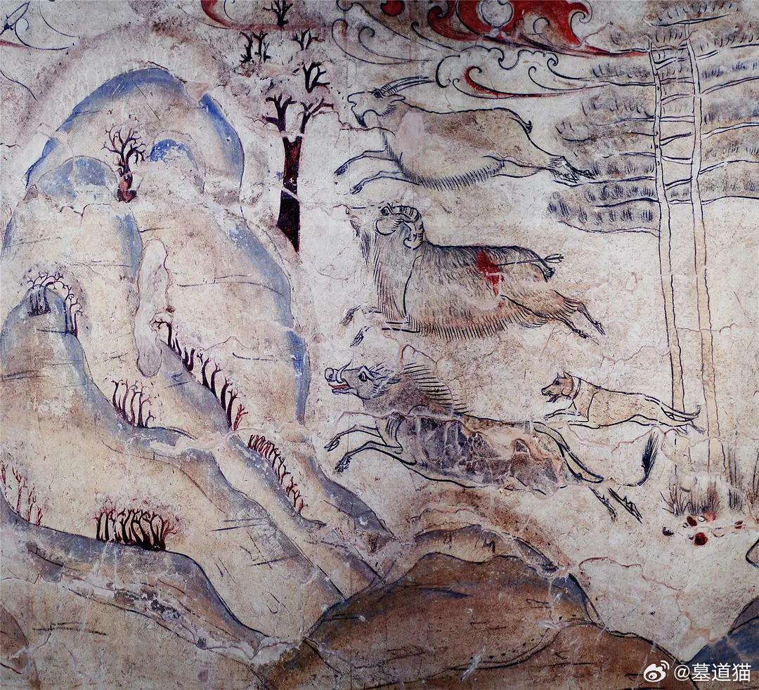 忻州九原岗北朝壁画墓之狩猎图