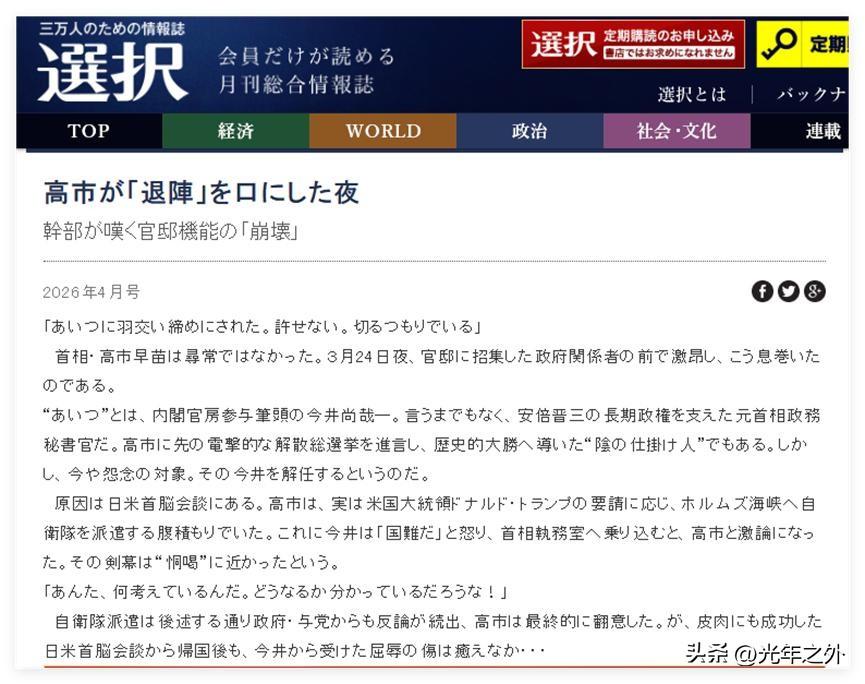 高市早苗这波,真是把日本脸丢到全世界! 据日本《选择》4月2日爆料,她为讨好特朗普,竟想把自卫队送进中东当炮灰,被心腹今井尚哉怒斥后还想打击报复。一边对美跪舔无底线,一边对内独裁听不进忠言。 再看《每日新闻》曝光的白宫丑态:见特朗普一脸崇拜,见拜登签字笔肖像当众嘲笑,外交礼仪碎一地 。还有《朝日新闻》扒出的黑金丑闻:3万日元一人发遍自民党,公然踩法律红线 。 一个首相,对外献媚、对内打压、历史翻案、金钱铺路。日本网友骂得真对:这种人掌权,国家早晚被卖光!高市早苗内阁 日本领导人早苗 高日早苗 高市早苗演技派 高巿早苗 高市早苗下台 日本早苗