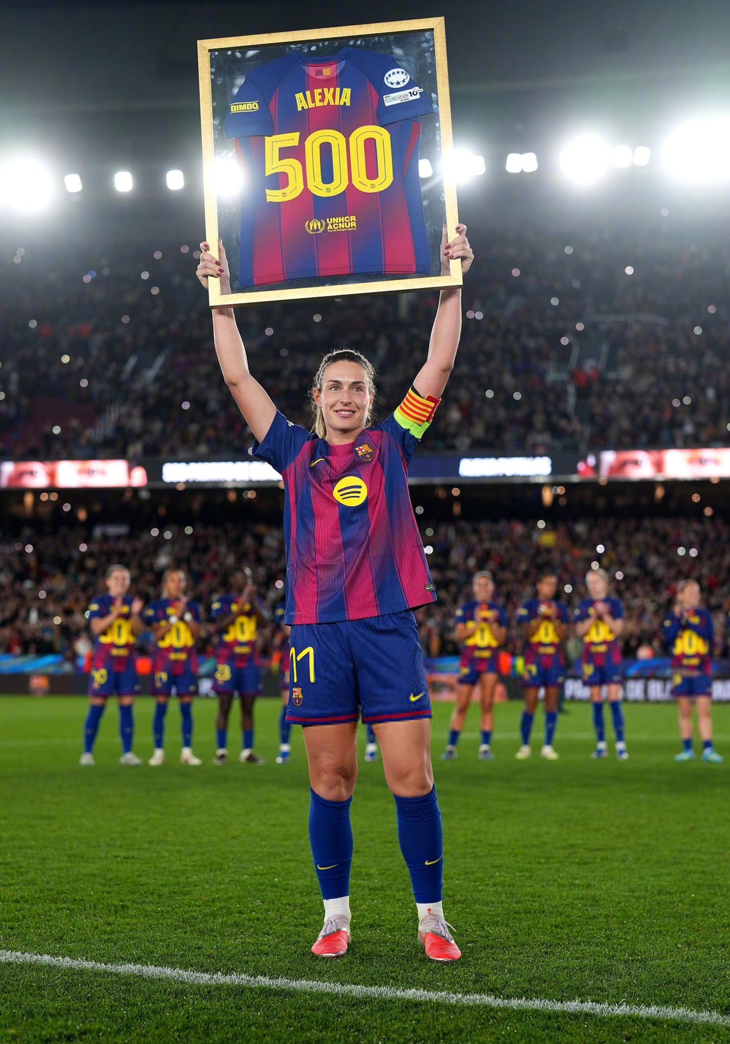 红蓝倩影 ❤️💙最完美的里程碑,是在Spotify诺坎普球场6-0完胜皇马!🎉祝贺阿莱西亚在女足国家德比完成了个人代表巴萨女足的第5️⃣0️⃣0️⃣次出场!距离梅拉妮的纪录,仅剩16场⏳