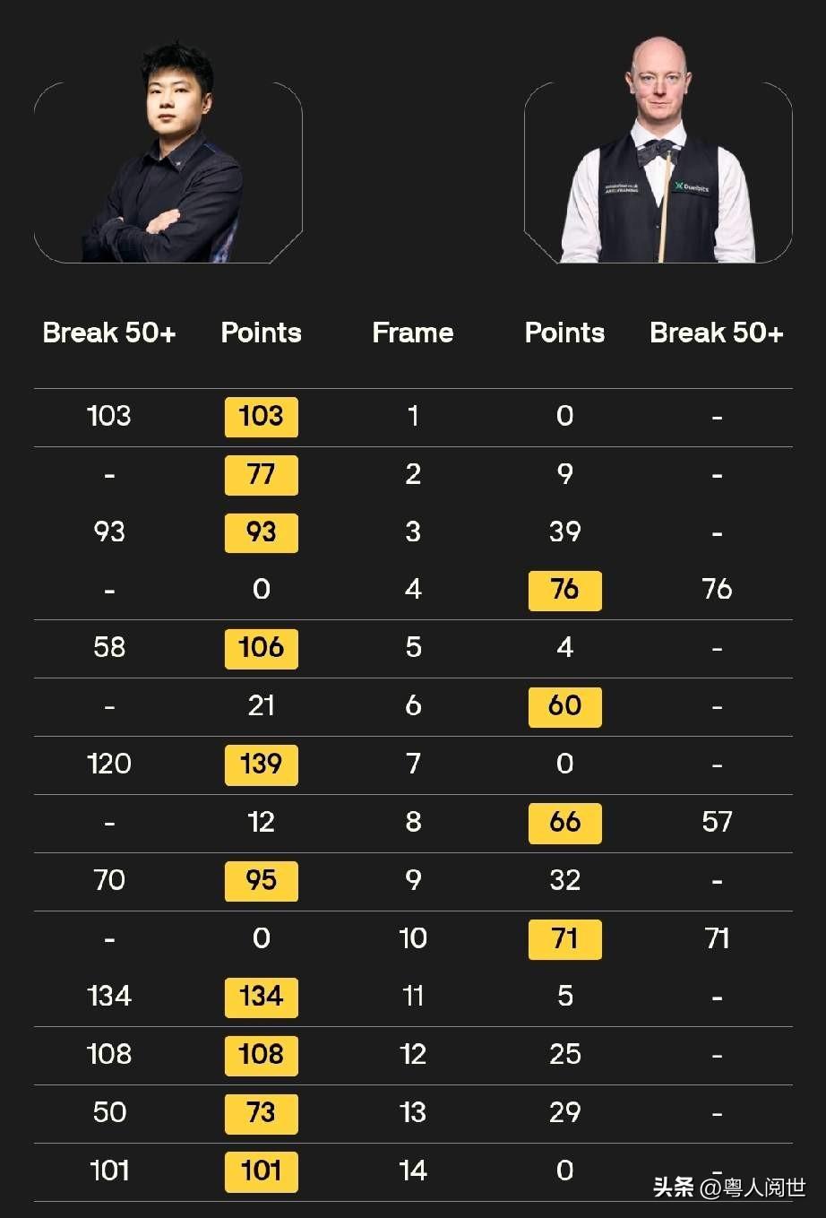 摧枯拉朽!斯诺克球坛从此又多一对梁子。 第一阶段势均力敌的5:3、第二阶段以摧枯拉朽之势打了个5:1,2026斯诺克巡回锦赛1/4决赛上,韦克林再次遭遇赵公子的残暴杀戮、4:10止步8强。 实力,从来都是以数据说话:5杆破百、4杆50+的恐怖数据,敢问谁与争锋!面对剑拔弩张的常冰玉,韦克林能以一波8连鞭、轻松拿捏;面同样进攻凌励的吴宜泽,韦克林亦上演8连鞭逆风翻盘,就是面对闲庭信步的赵公子,韦克林难以越雷池半步!是命中注定的相定相生相克?是心理素质的优胜劣汰?但,可以肯定的是,同为90后的这对球员,将又会是斯诺克球坛职业生涯中结成梁子。