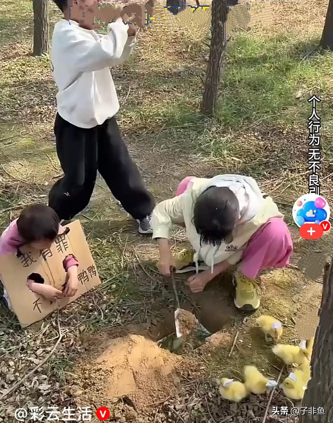 近日,山东一妹妹调皮不小心把小鸭子玩死了,姐姐心疼又难过,认认真真地、风风光光地给小鸭子举办了一场专属葬礼,还小心翼翼把小鸭子埋起来,满满的仪式感,看得人心里软软的…… 妹妹已经知道错了,还像个犯人似的脖子上套个牌子,牌子上写着:我有罪,不该玩鸭鸭”,又好笑又好哭…… 弟弟还在旁边掏出唢呐吹了起来,配乐一步到位,葬礼流程直接拉满,严肃又搞笑…… 明明是伤心的事,被她们这波操作整得又好笑又破防,小朋友的世界太单纯可爱了…….