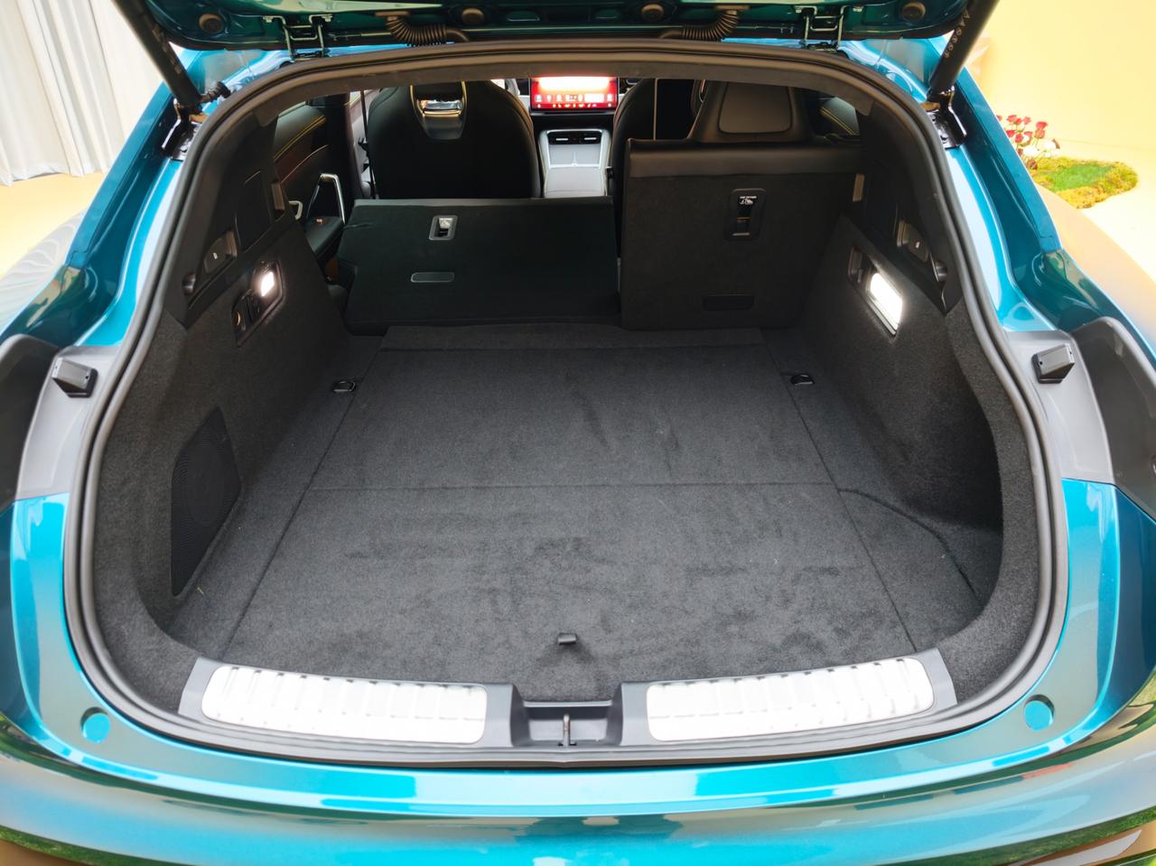 跟产品经理聊了一下,先说尚界Z7的掀背。车子本身就长(5米),后备箱进深做得大,产品经理担心女性用户弯腰够行李费劲,再加上外形已经往轿跑方向走了,所以干脆彻底一点做成掀背。 但这招也有代价——尾门铰链位置会吃掉一点后排头顶空间,还好实际坐起来问题不大,属于"知道有这回事但坐进去感觉不到"的程度。如果你真的很介意,你可以看看猎装版。猎装版的尾门铰链往后挪几公分,比轿跑版侵占更少。 那块会动的中控屏更有意思。我问他左右旋转够用吧,为啥还要前后伸缩?产品经理说这不是功能考量,是给"小艺小艺"加点人味——左右摇头加上前后探脑袋,这AI就更像个有灵气的人,而不是冷冰冰的机器。那个物理旋钮纯粹为调屏幕角度而生,音量温度一概不管,主要就是方便你去调节屏幕的角度,因为温度音量那些叫个“小艺小艺”就够了。就单纯为情绪价值买单,在扣成本的当下倒是不多见的。 性能这块他们也很清醒。ultra版的3.44秒加速是"全段真实数据",不搞那种"1-foot rollout"的计时。并且原配的胎是EC7,你得选装才给到倍耐力的P0。他们也明确说量产版不是纯粹为追风少年服务,自动驾驶看到你开车野还会介入纠正。要做极致性能将来视乎需求出特别版,但量产版先守住"别出事"的底线。