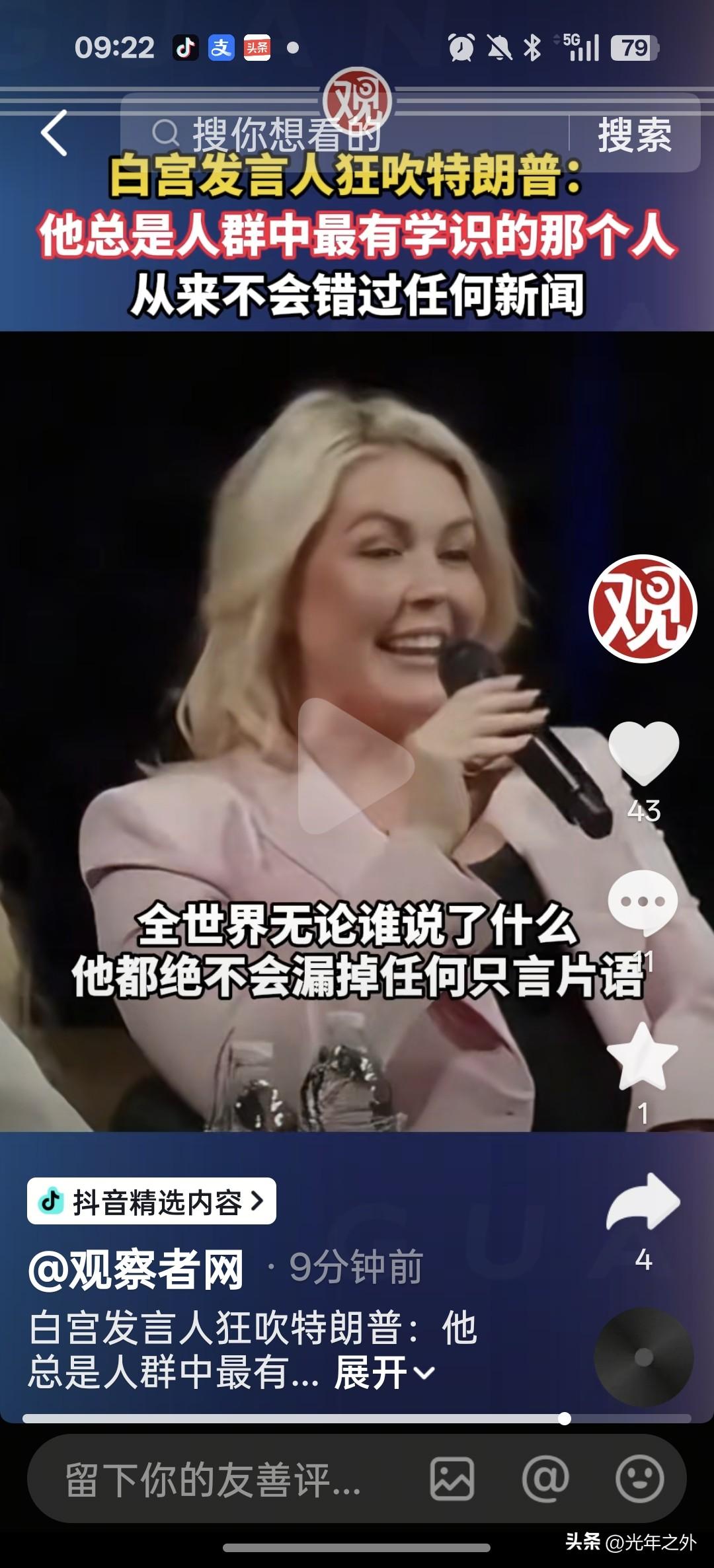 白宫发言人卡罗琳·莱维特公开吹捧:总统时刻掌握全局,每一条情报、每一条新闻都不会漏。他是最有远见、最有学识的总统。 白宫发言人这彩虹屁,吹得简直没边了!张口就说特朗普全局尽在掌握、不漏一条新闻,还是最有学识最有远见的总统,听得人脚趾抠地。 现实呢?中东打得一团乱,伊朗反击不断,霍尔木兹海峡危机四伏,美国盟友纷纷划清界限,国内舆论一片骂声。所谓“掌握全局”,不过是嘴硬逞强;所谓“最有学识”,更是睁眼说瞎话。 吹捧得越狠,反差越滑稽。把糊涂当英明,把蛮干当远见,这样的“学识”和“全局观”,美国民众可消受不起。