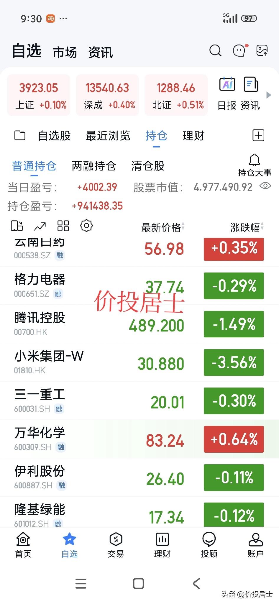 正常来说进入股市时间越久的股民换手率应该是越低的,因为基本都遭遇过股市的毒打,此外也知道频繁交易会导致产生实际高昂的交易成本,以至于账户里的钱不知不觉中越来越少! 我拿三爱奶奶和年年妈举例子,很多人吐槽年年妈死扛今世缘,实际情况是她在这一只票上浮亏那么多,再去换别的票万一又换在高位呢?再万一低位割肉又换手一个高位的情况会更糟糕!这并不是说我就看好今世缘,相反我除了高端白酒,其它的酒水我基本看都不看。我只是说年年妈这样扛住,在这之后反而会相对在股市里亏的少,她要是频繁换手,账户的钱能变成100万! 大多数散户换手会越换越错,这个是事实。再看看三爱奶奶,其实她换手频率也不算太高,相对于年年妈高倒是真的,大家可以要知道同比例的钱,三爱奶奶可要比年年妈高出很多交易成本。顺风顺水的时候看不出来频繁换手的坏处,一旦拉长周期,频繁换手,账户里的钱很快就没有了[捂脸] 顺便说下今天港股休市,A股正常开盘[祈祷]