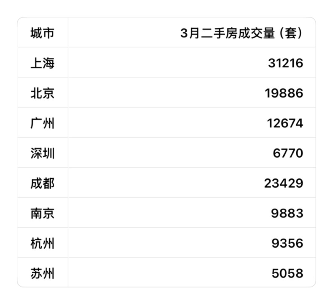 三月份楼市主要城市成交量,其中上海量价齐涨。楼市的拐点来了吗?