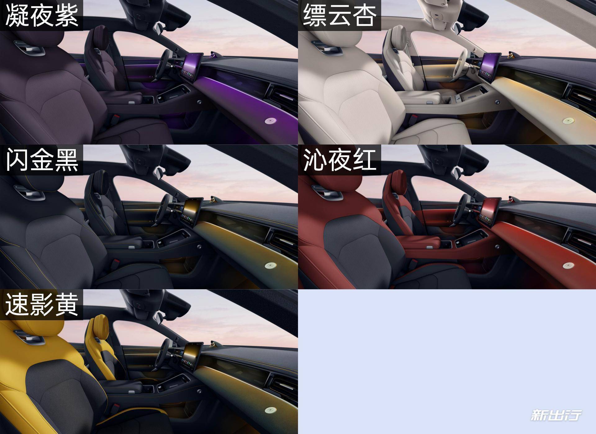 1、尚界 Z7 与 Z7T 内饰颜色有5个,分别是:沁夜红、凝夜紫、闪金黑(3000选装)、缥云杏以及 Ultra 专属的速影黄(含碳纤维饰板 +运动麂感皮座椅、6000选装);