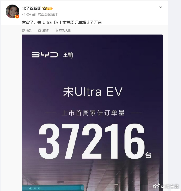 宋Ultra EV这个订单量还是不错的,一年免费充电还是挺诱惑人的