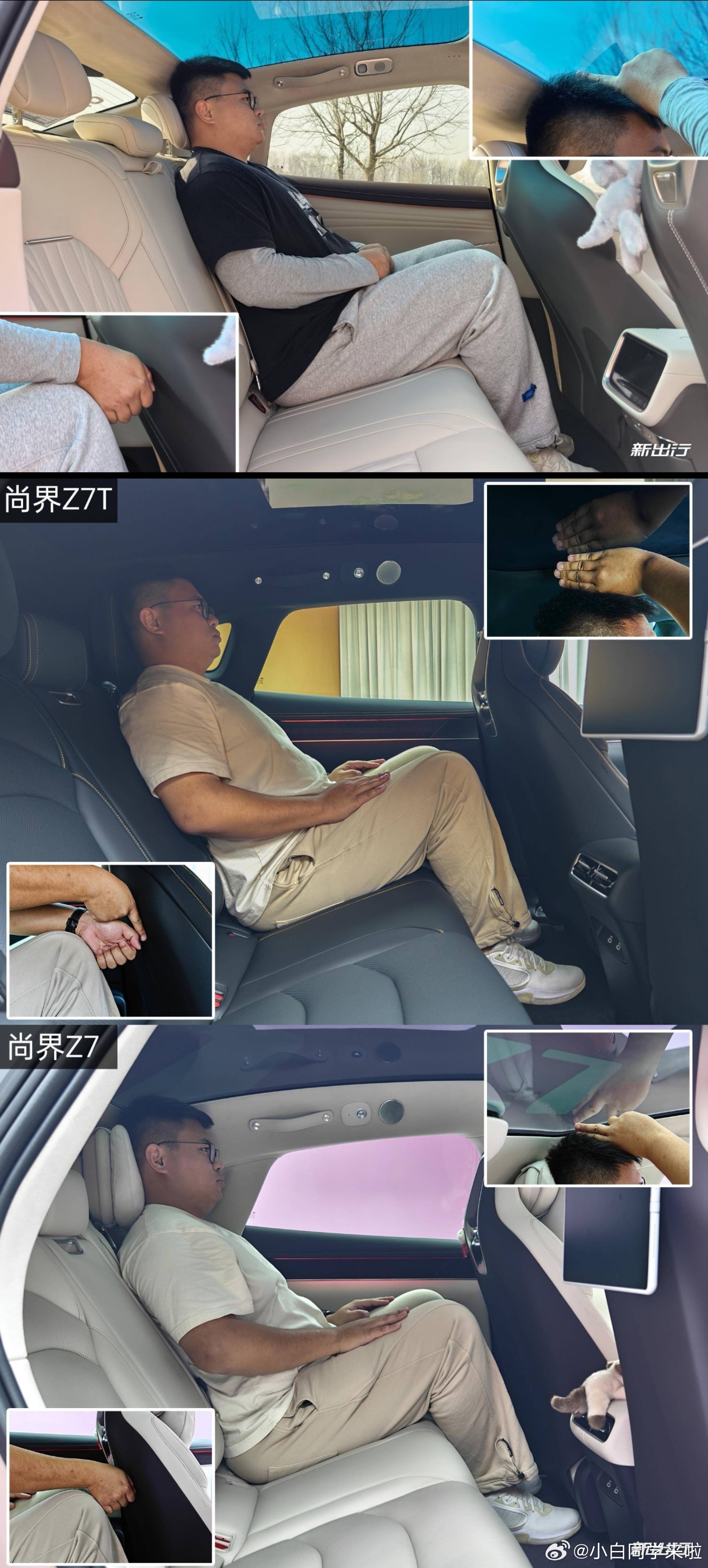 尚界Z7/Z7T 对比小米 SU7 的乘坐空间,Z7T 二排头部空间确实更有优势。