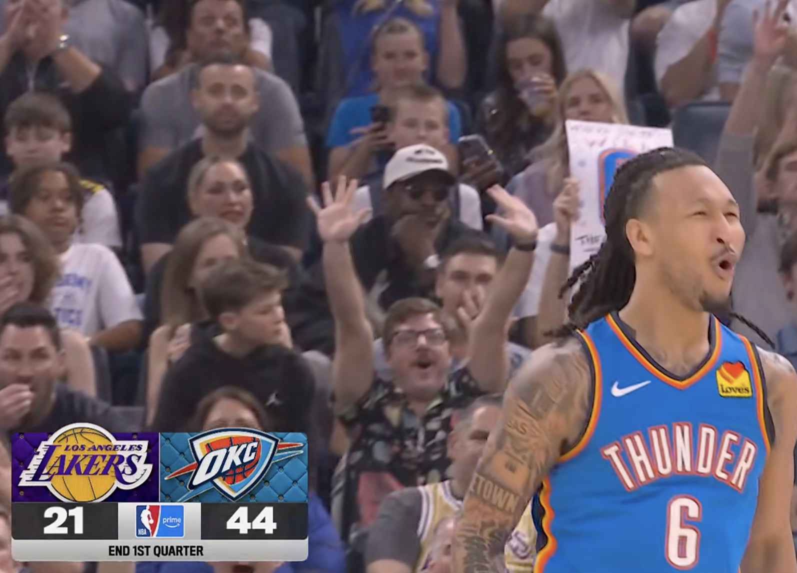 想说点什么?第一节结束,湖人21-44雷霆。湖人vs雷霆