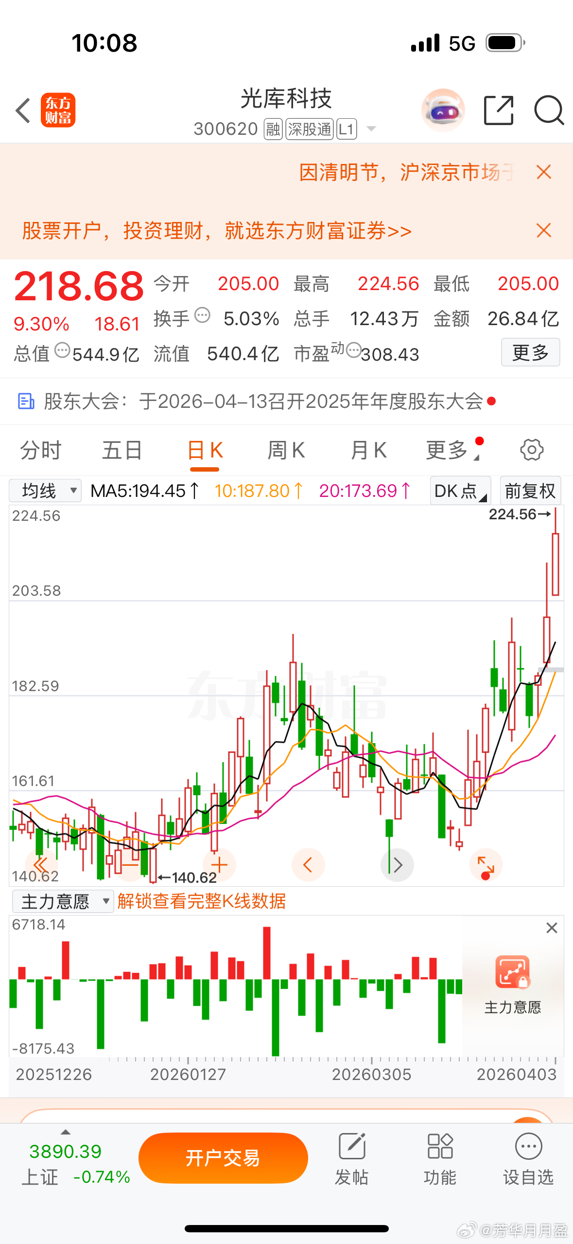 $光库科技 sz300620$ 继续历史新高,长飞光纤天天抱团中阳线,根本与指数无关,看好的ocs滕景科技,德科立,光库科技都太牛啦!